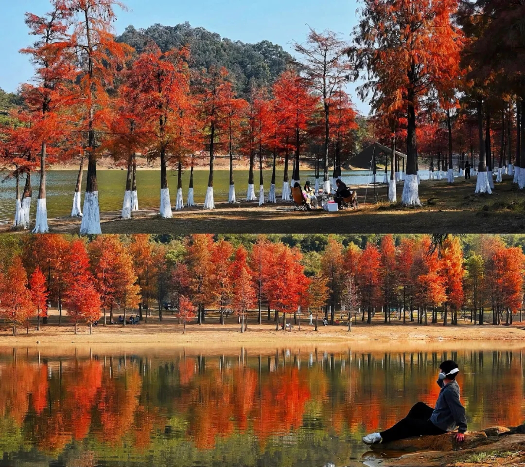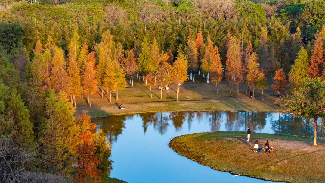 偏爱清静,可以去中央群岛公园的杉林栈道或东莞市松山湖中心公园的沿湖杉林。这里人少景美,能让你独享一整片宁静的冬日色彩。