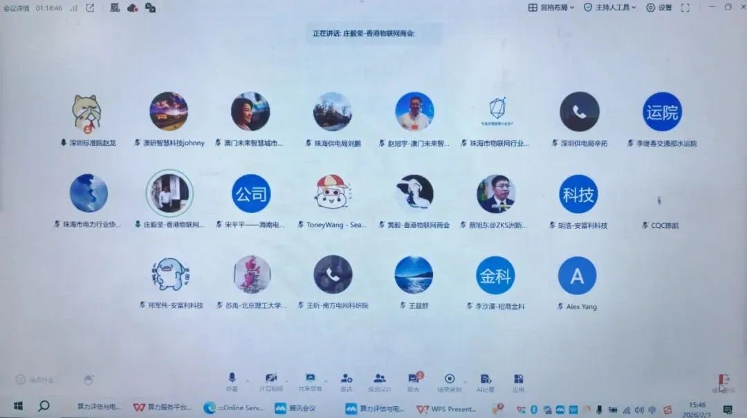2026年2月3日,由深圳市物联网产业协会主办、深圳市标准技术研究院承办的算力评估与电力协同巡检技术湾区标准研讨会在深圳档案大厦顺利召开。来自粤、港、澳三地的行业专家及头部企业代表等近40人,通过线上和线下两种参会方式,围绕《算力服务平台能力评估》和《电力系统用通信机房分布式协同巡检技术要求》两项团体标准展开深度研讨,为粤港澳大湾区算力与电力领域规则衔接、产业升级注入强劲动力。
