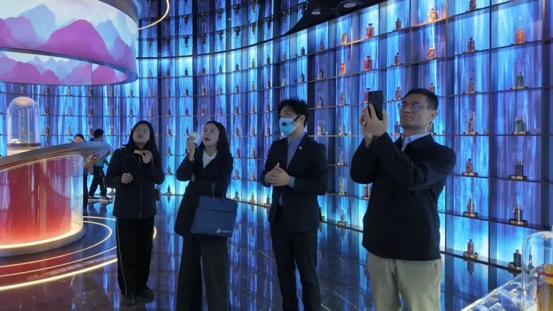 领导一行实地察看茅台文化体验馆布局与运营情况,听取相关工作汇报,对文化馆建设成果给予高度肯定。领导强调,要深耕岭南文化,推动茅台文化与地方特色深度融合,筑牢品牌文化传播阵地。