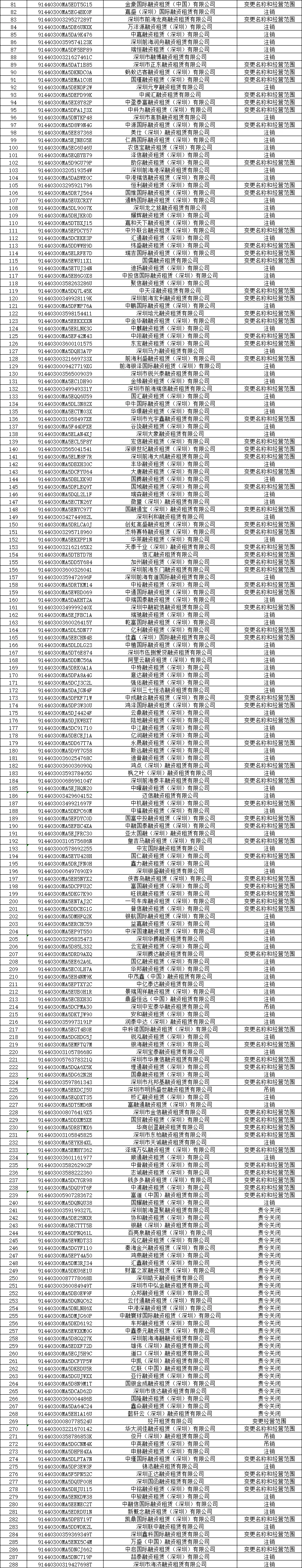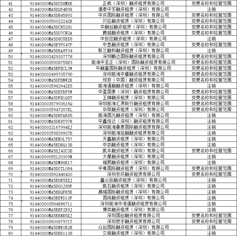 关于深圳市部分融资租赁公司