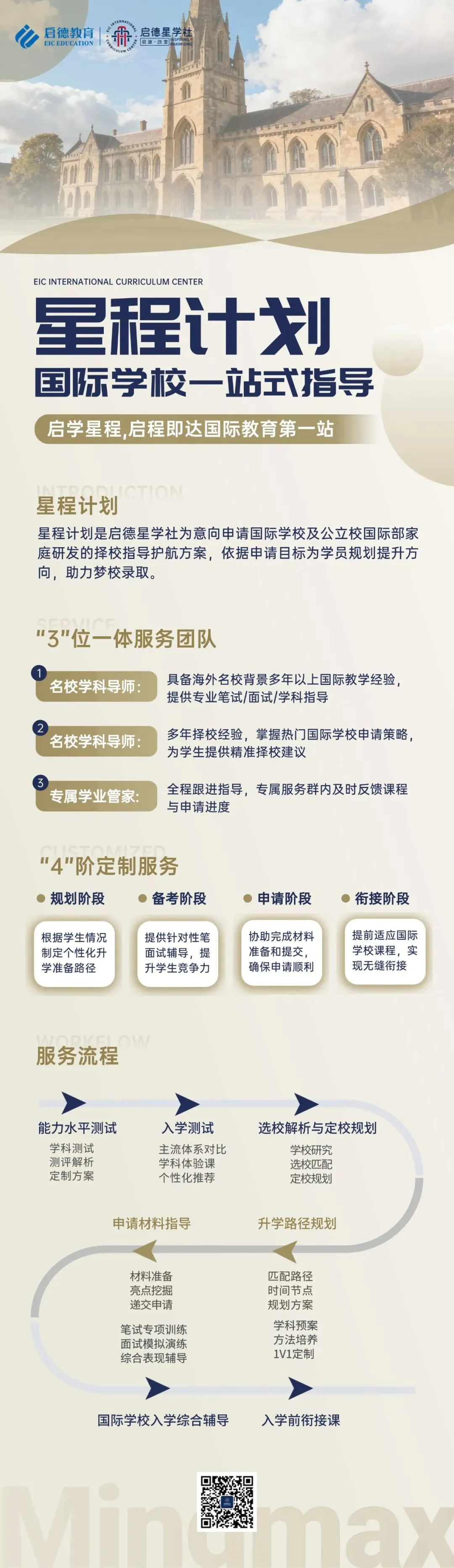 如需了解更多国际学校详情或获取院校招生简章资料,可随时咨询启德星学社,我们将为你的择校备考保驾护航~