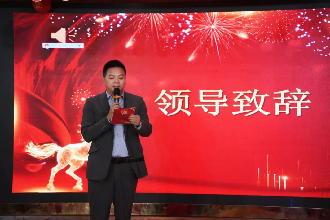 成绩的取得,离不开领导的悉心指引与默默付出。首先,深圳市润泽人力资源有限公司创始人、齐兴企业管理 (深圳) 有限公司总经理郭基胜郭总上台致开幕词。郭总的致辞高瞻远瞩,既肯定了全体同仁过去一年的辛勤付出,也为公司新一年的发展指明了方向,让大家倍受鼓舞。