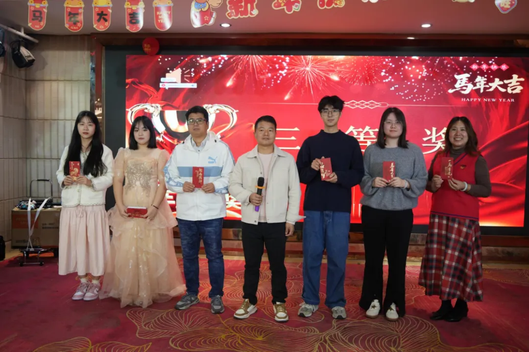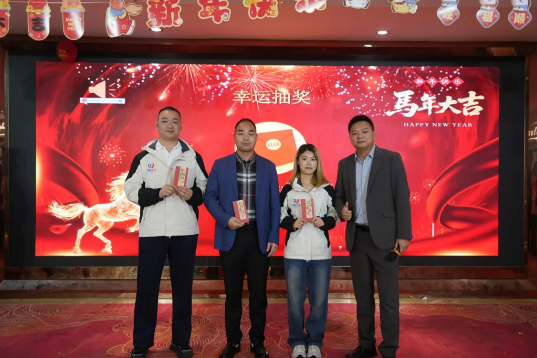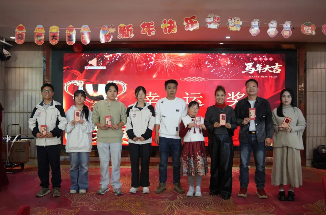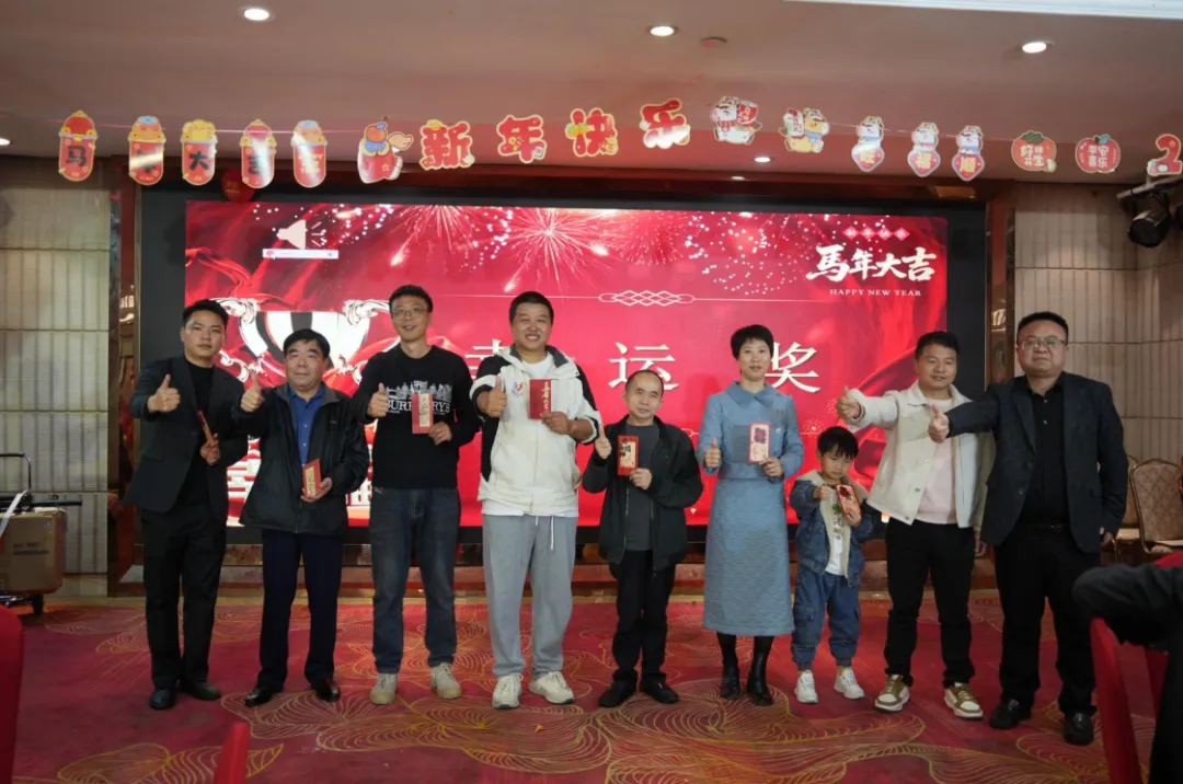 3 份二等奖(每份 1000 元现金)、1 份一等奖(2000 元现金)相继揭晓,郭总、黄总亲自上台抽取终极幸运儿,现场氛围一次次被推向高潮。恭喜所有中奖的同仁,愿这份好运伴随大家一整年!