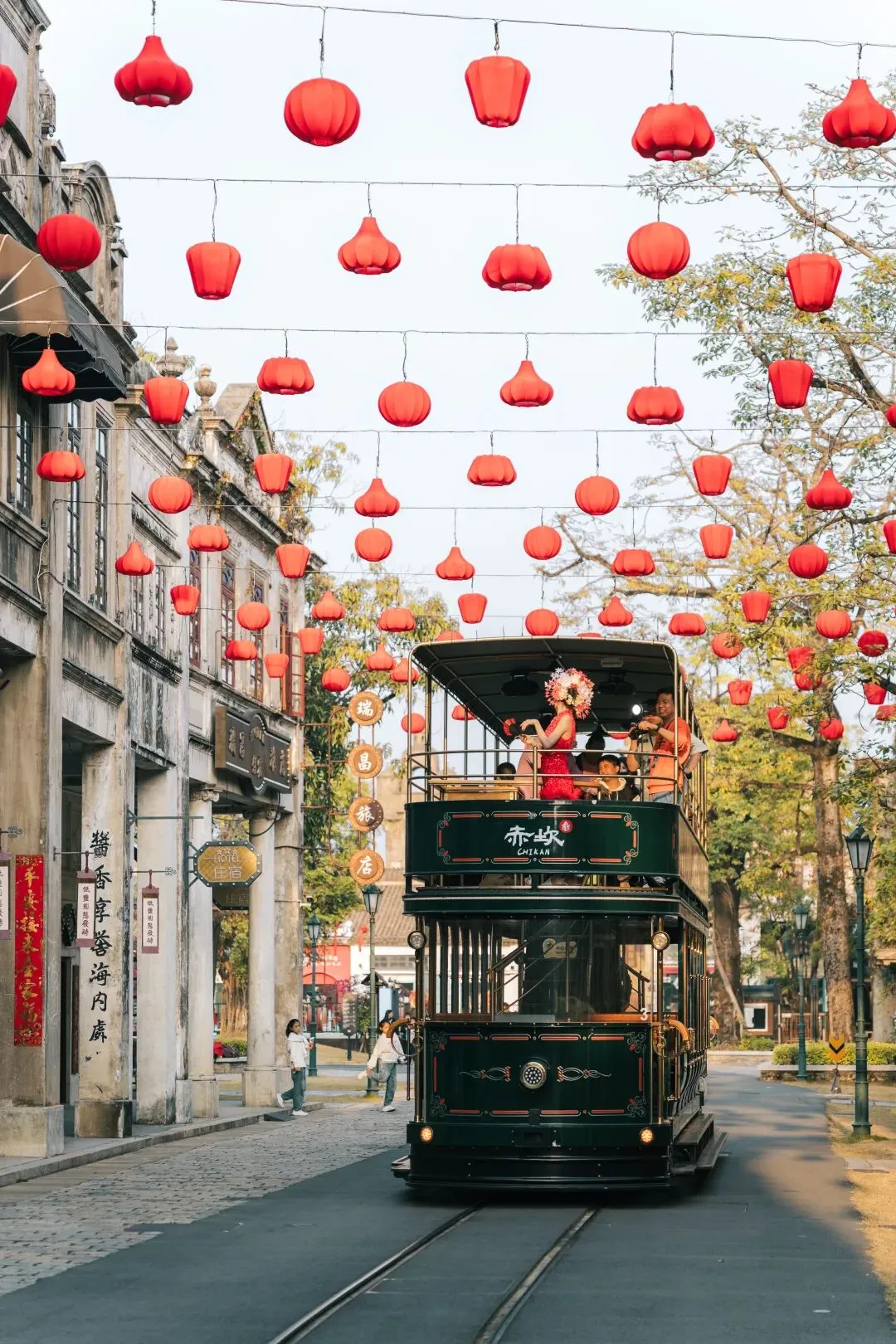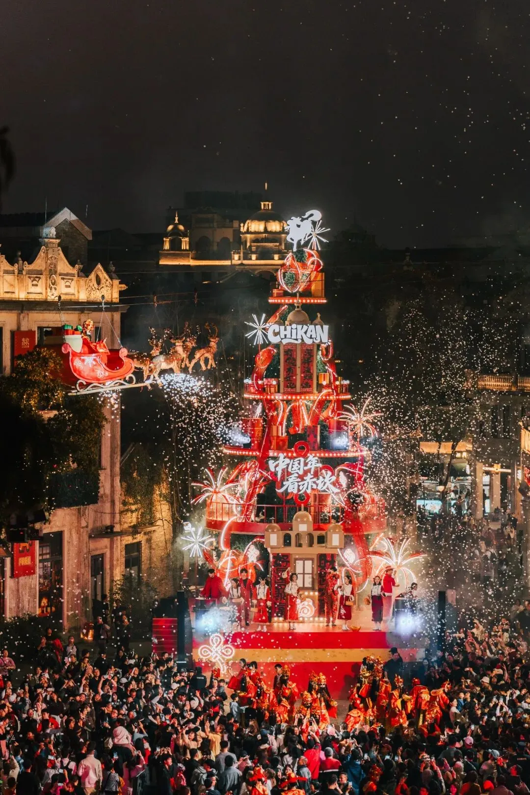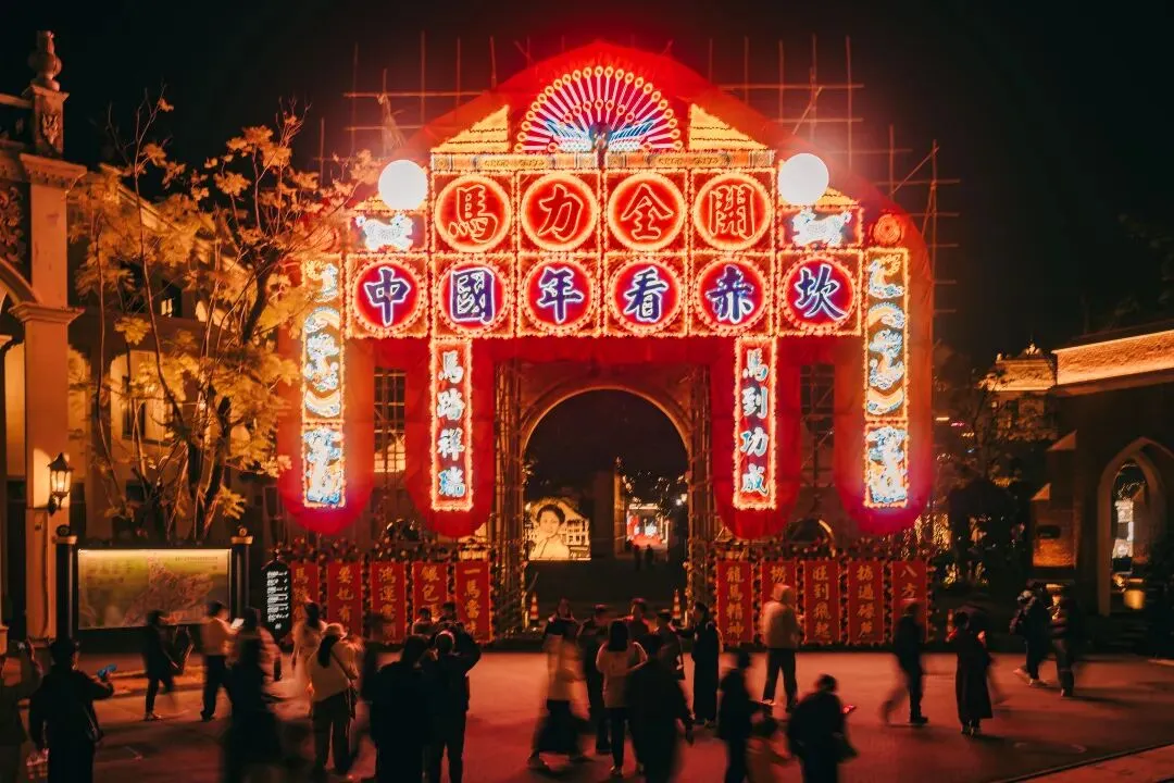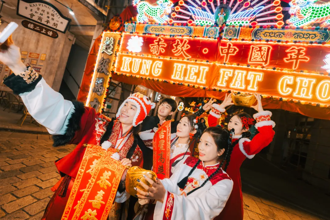 在出圈的圣诞奇妙夜后,有中西合璧文化底色的赤坎摇身一变,让45万㎡的度假区换上了传统喜庆的春节新装。
