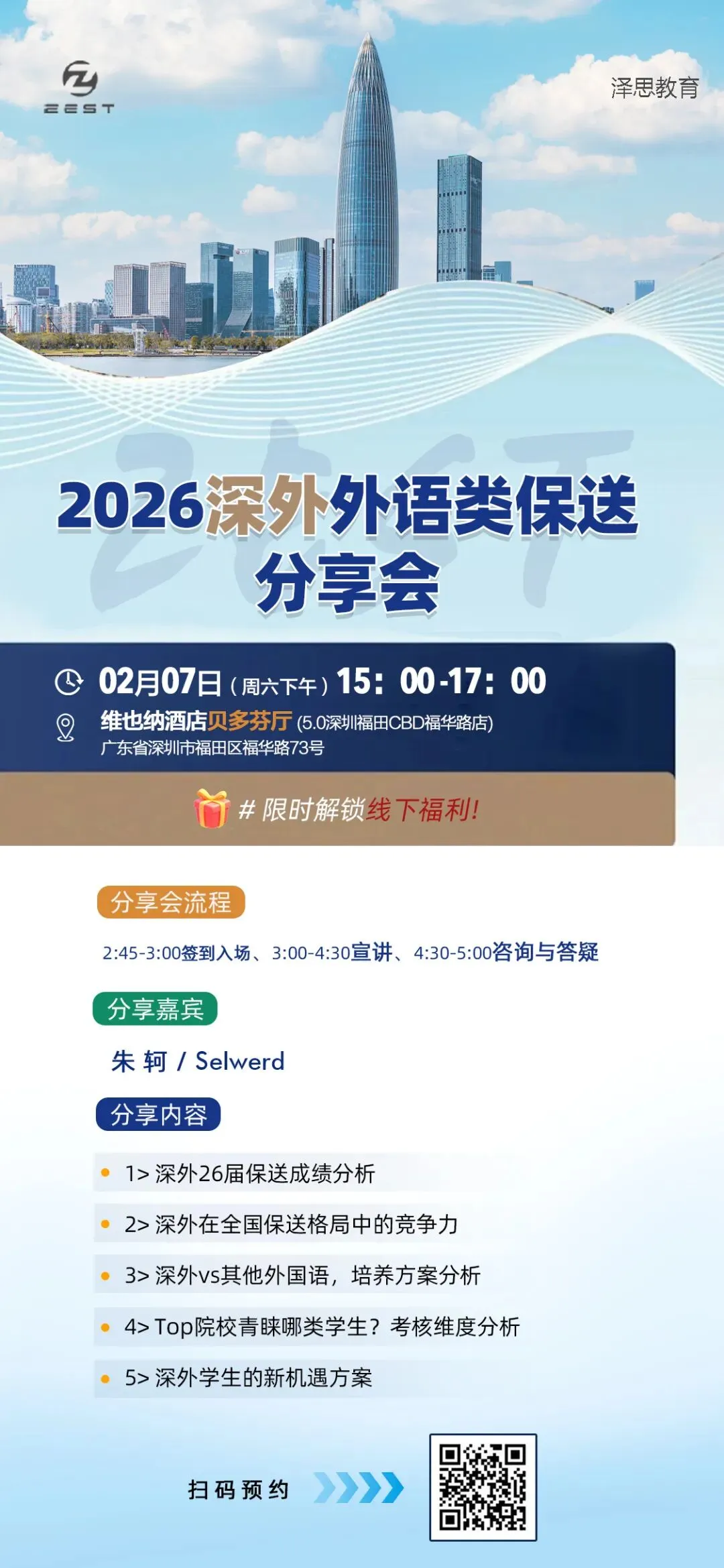2月7日,我们在深圳和你一起解锁外语保送备考秘籍,助力孩子冲刺理想院校~