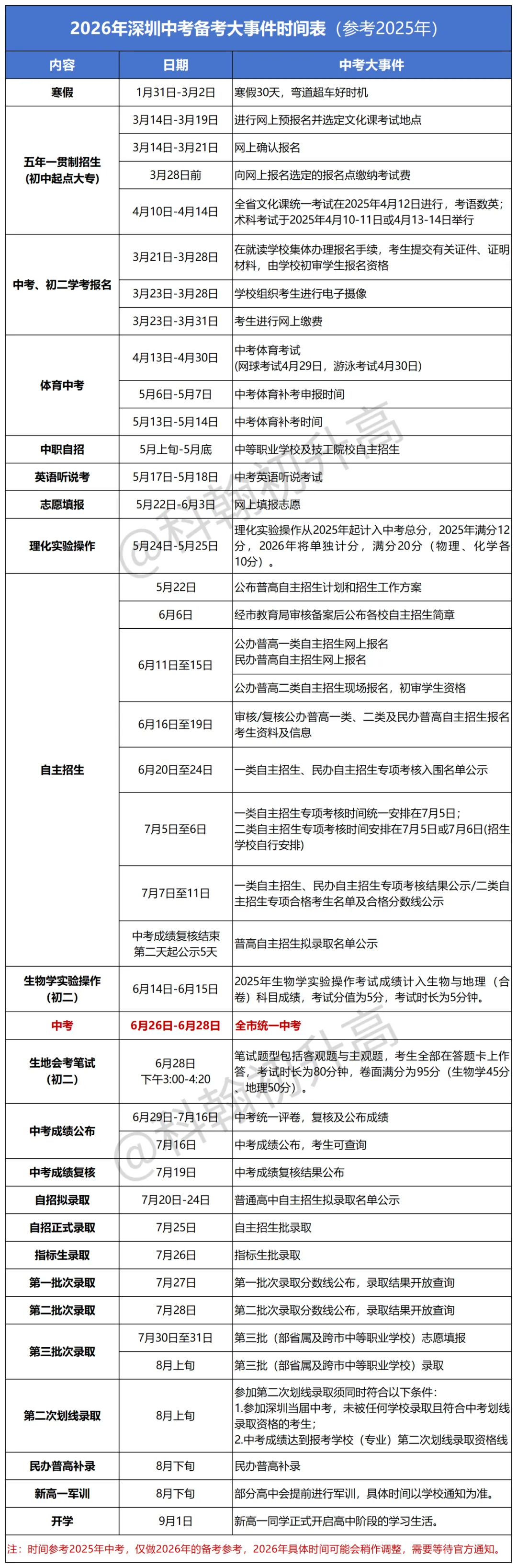 初三学生如何备考?中考前有啥重要节点?家长需要为孩子准备什么?赶紧和小高老师一起来看看2026深圳中考时间表。