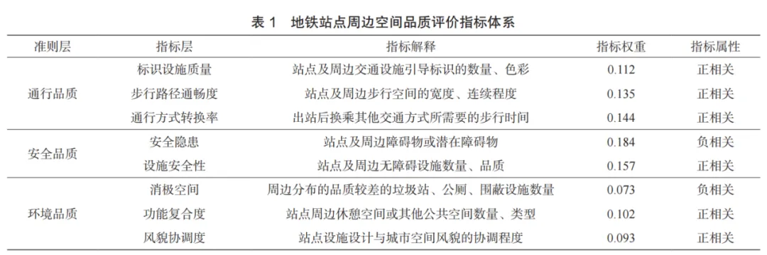 在城市更新背景下,地铁站点的触媒效应可带动周边地区功能重组与环境提升,推动交通与城市功能的有机融合,为居民提供更优质的出行环境与公共空间。因此,近年来,对地铁站点周边空间的研究在“节点 -场所”模型基础上增加“联系”与“品质”等维度,强调物理环境的舒适性、安全性以及乘客的环境感知。对站点周边空间品质的评价重点也逐步扩展至交通连续性、街区视觉、标识系统及文化元素的融入,注重站点空间与城市整体空间的融合,并综合考量用地类型与环境价值等因素。