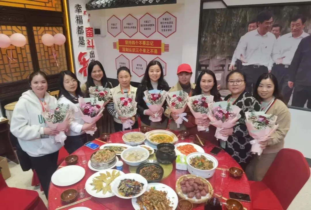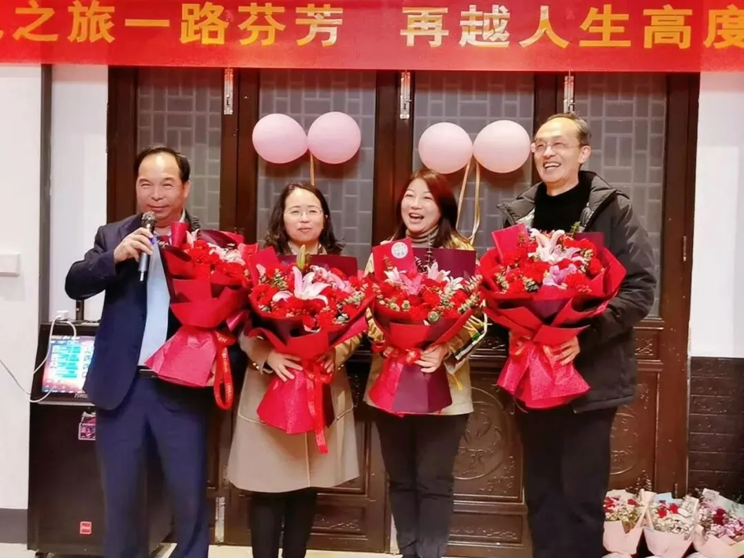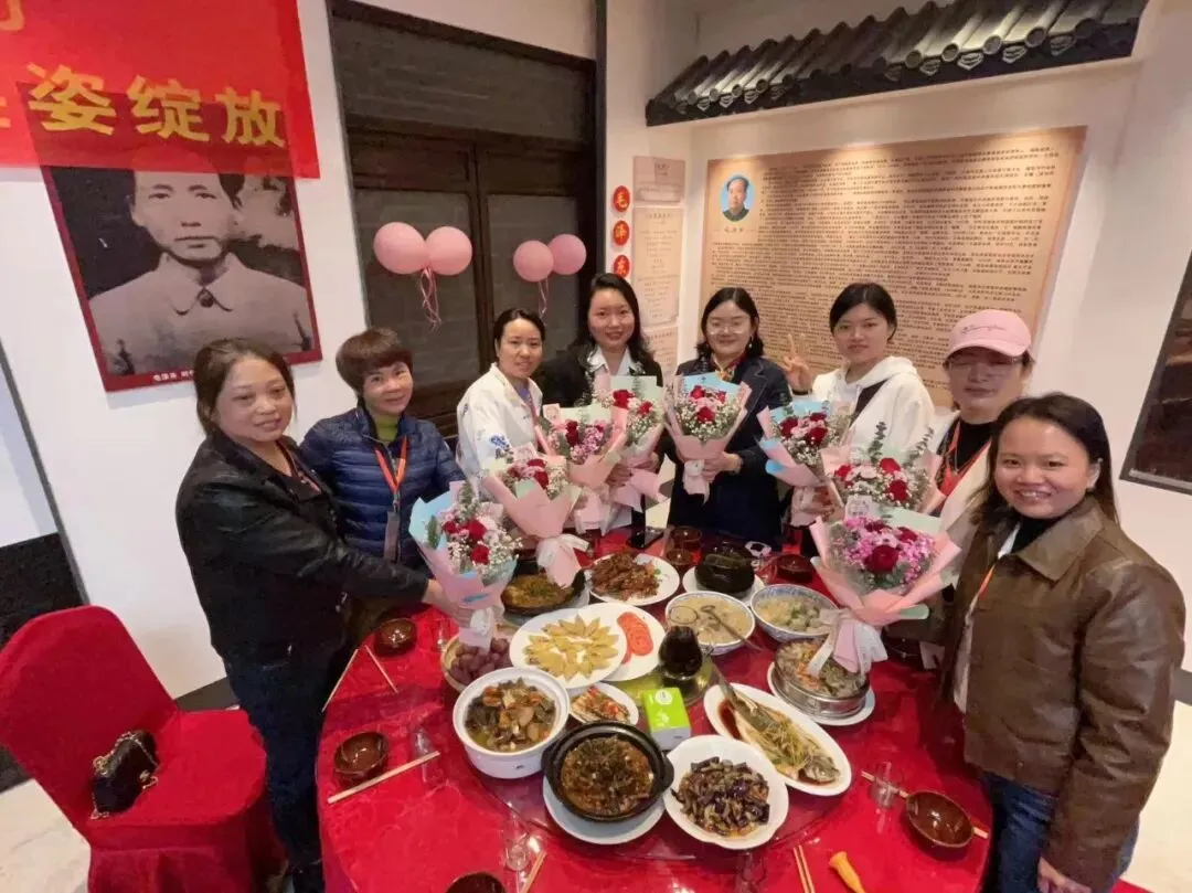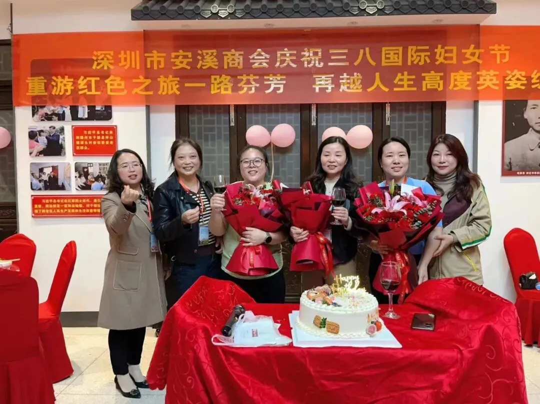 当天晚上,商会在江西于都基地举办了一场主题为“重游红色之旅一路芬芳 再越人生高度英姿绽放”的庆祝三八国际劳动妇女节活动,在茂雄集团的精心策划安排下,为当天所有的女神们准备了漂亮的鲜花和精致的蛋糕、丰富的晚餐,满满的仪式感,让大家深深感受到今年的女神节,过得很有意义,非常开心。期间,恰逢考察团有三位三月份的寿星到场,茂雄集团为她们精心准备了生日蛋糕、贺卡和鲜花,送上了美好的生日祝福,大家一起陪她们度过了一个温馨幸福、愉快难忘的生日,把整个气氛推向了高潮。会上,创会会长杨连成、会长陈浩天、党支部书记兼秘书长罗灿城、妇委会主席王晞鈴、顾问李贵兰、秘书长苏阿宝等纷纷发言,向各位女神送上最好的祝福,表示商会所取得的成就,离不开女神们的支持,希望大家今后共同努力,把商会工作做得更好。
