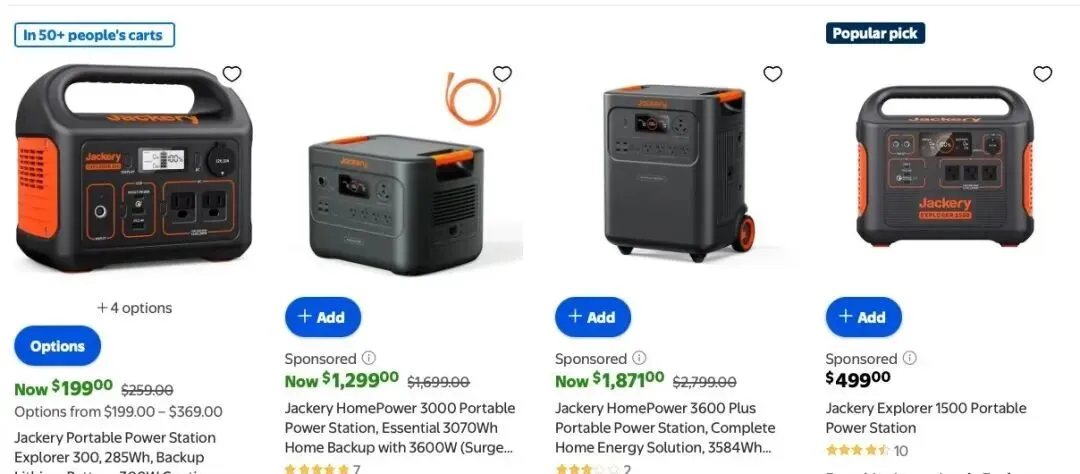 # 线下,已与沃尔玛、Costco、Home Depot 等全球知名零售商建立深度合作,其中 Jackery 品牌在沃尔玛还常被贴上“Popular pick”等热门标签。
