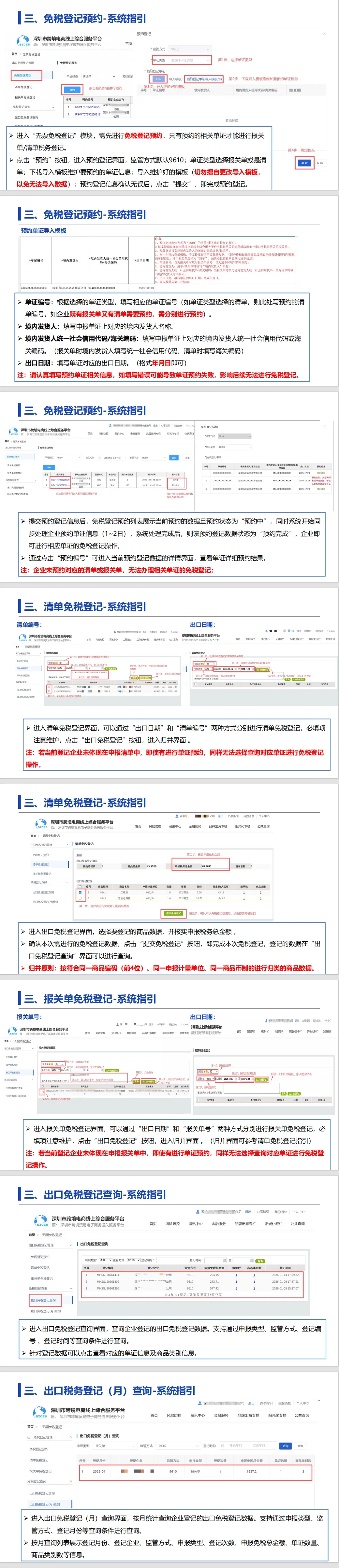 2️⃣ 在完成出口货物结关后,至少提前两天进行免税登记预约。系统将在预约后的第三天开放数据确认功能,企业根据指引进行清单或报关单的免税登记。