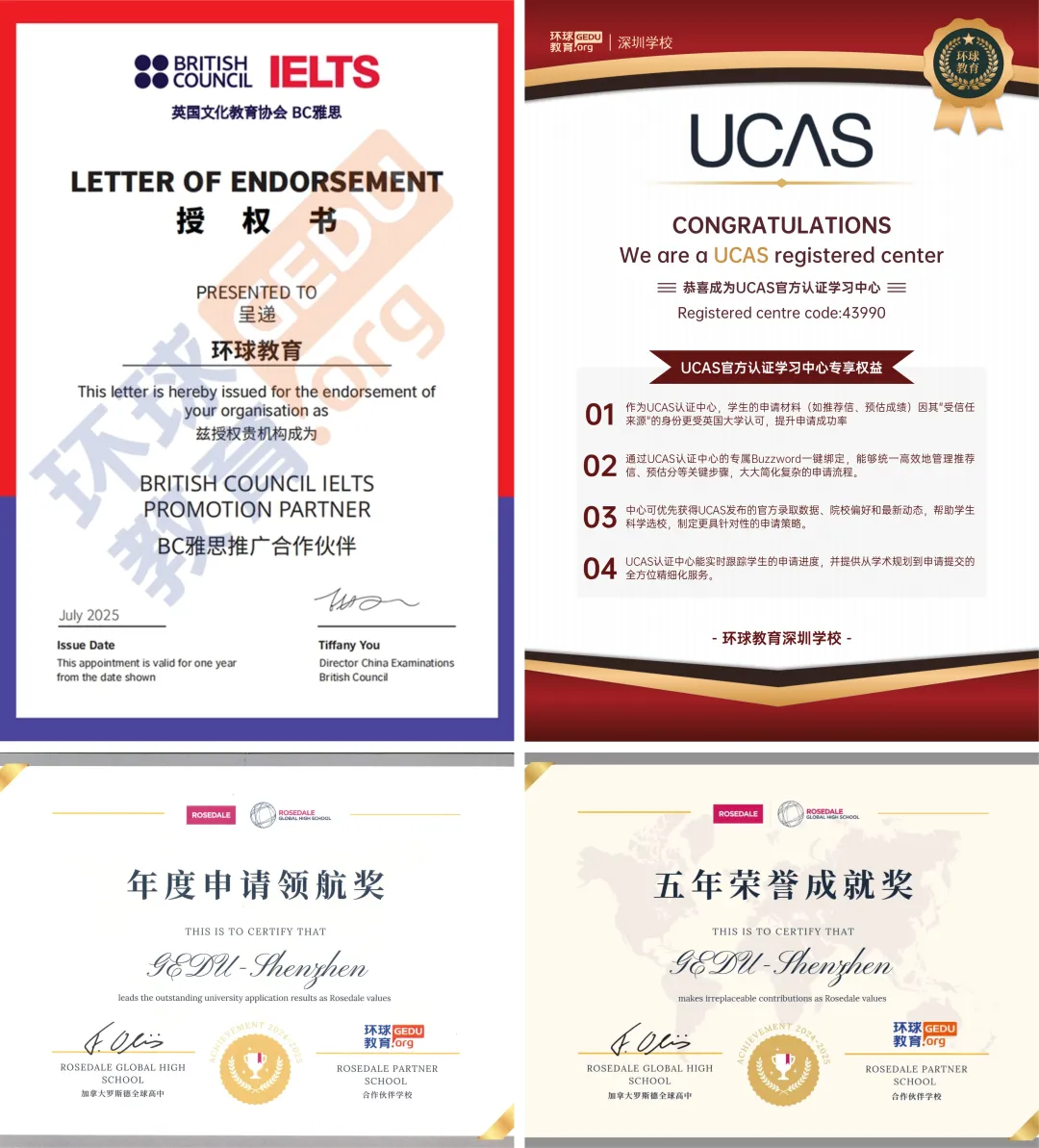 2025年,环球教育载誉前行——再度斩获“综合实力语言培训品牌”称号,并“连续多年获得雅思考试官方白金级合作伙伴认证”,成为国内少数同时获得多项国际语言测评体系认可的教育品牌。