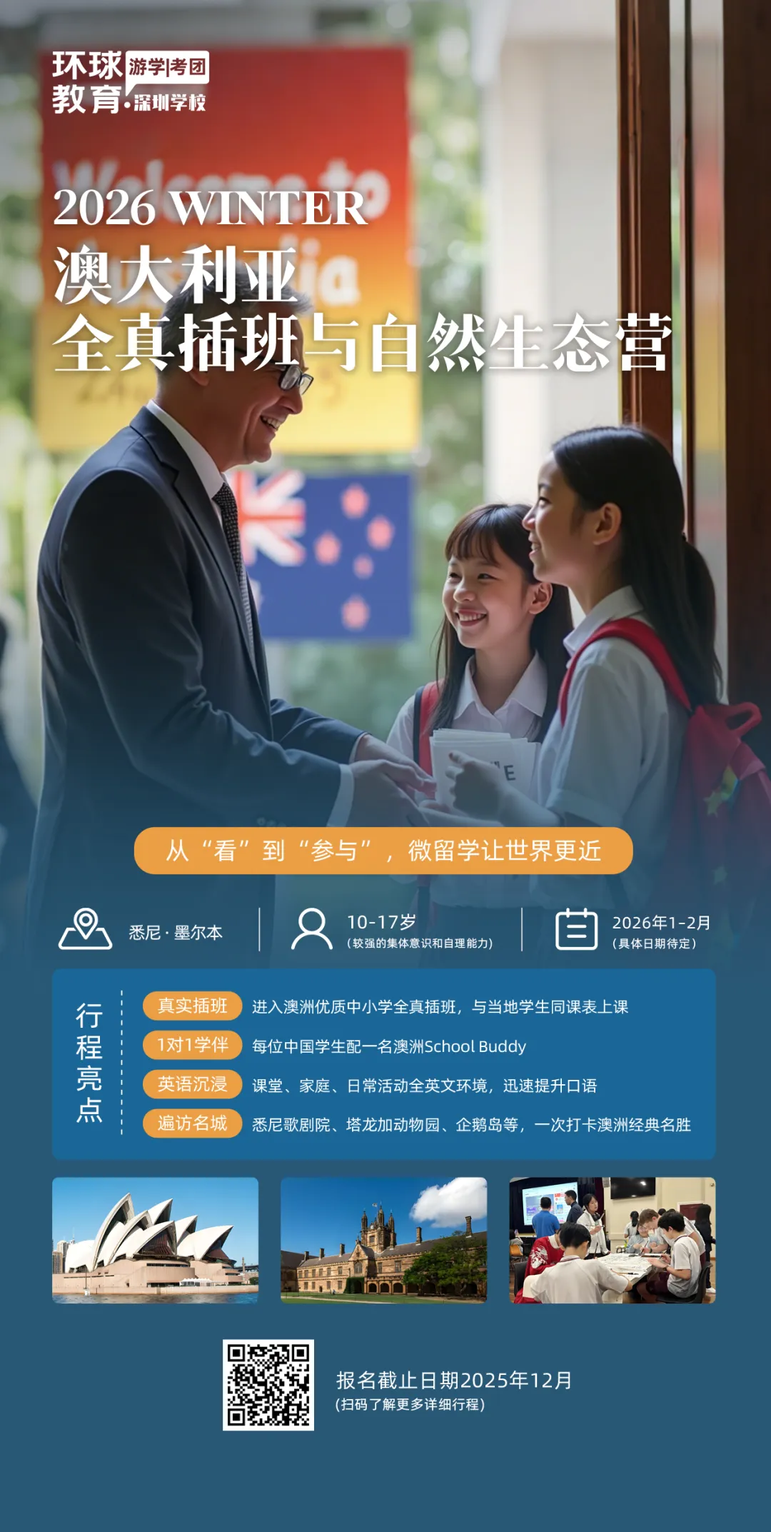 面向10~17岁,进入澳洲优质中小学,与当地学生一同上课,一次打卡澳洲经典名胜。
