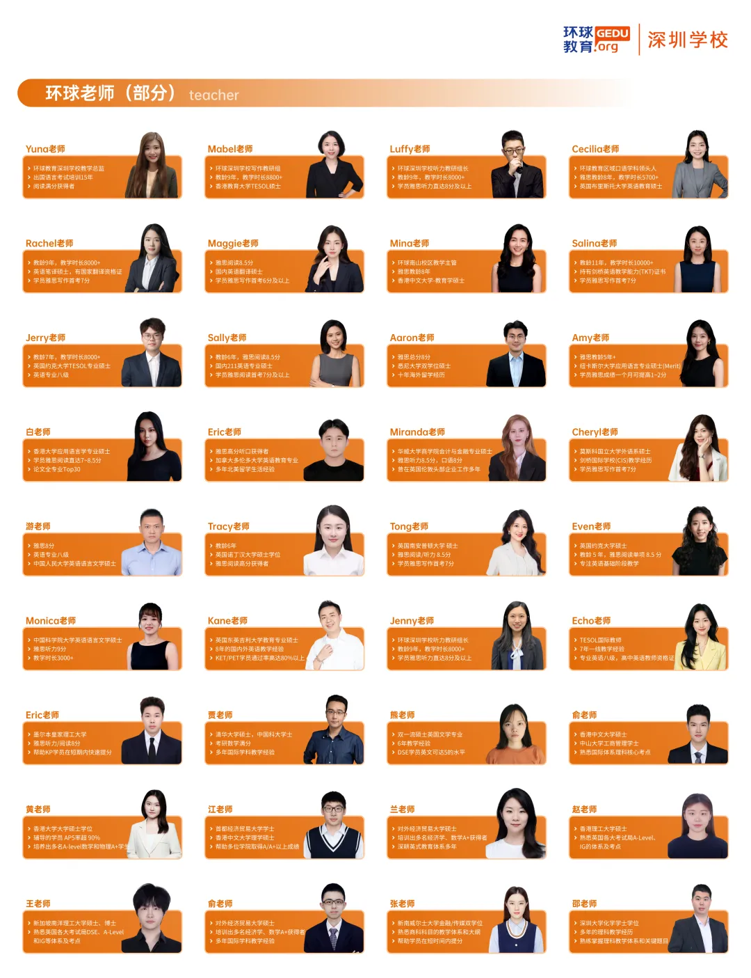 教师团队是环球教育的核心竞争力之一,通过科学的教师培训和管理体系,环球教育打造出一支力量雄厚的师资团队,为优质教学奠定了坚实的基础。