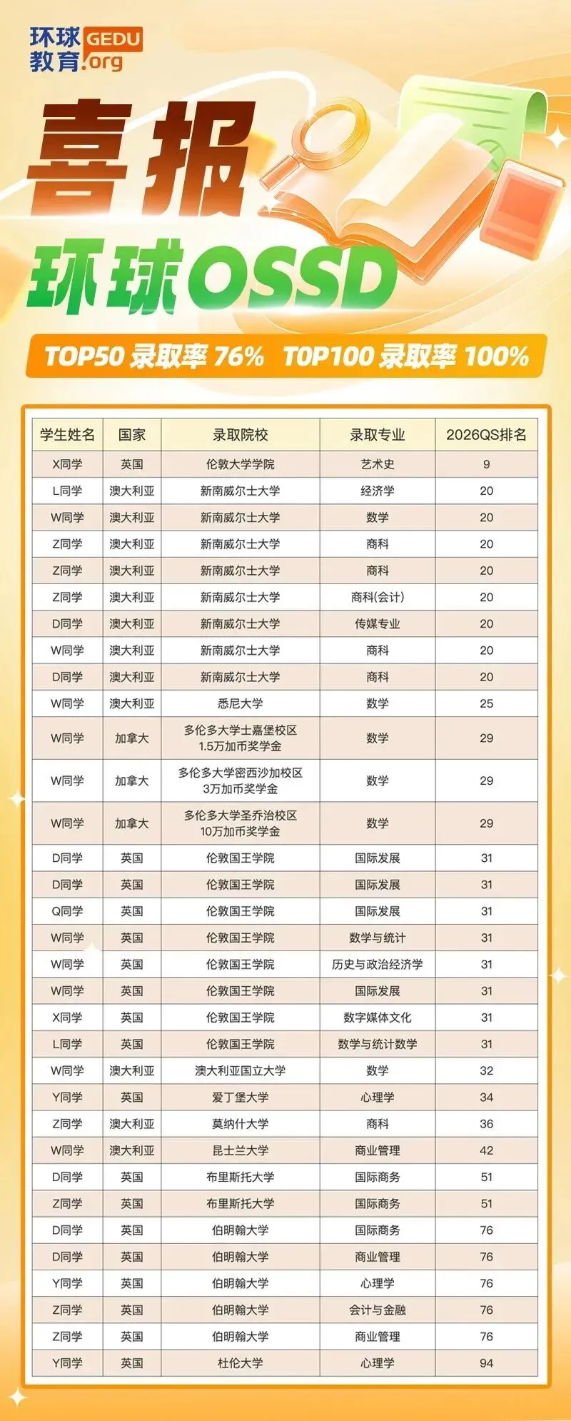 环球教育在国际教育行业耕耘了29个春秋,为数万名学子铺就了通往世界名校的道路,将“匠心”融入教育血脉的品牌,更是凭借极高的考试通过率和优质的教学成果,在业内享有盛名!