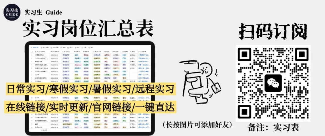 更多实习岗位尽在《实习生岗位汇总表》