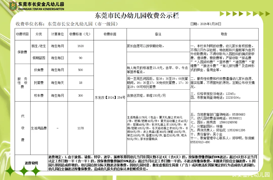 2月1日,东莞市长安金凡幼儿园发布《2026年调费通知》,自2026年1月31日起,对本园部分收费标准进行调整。