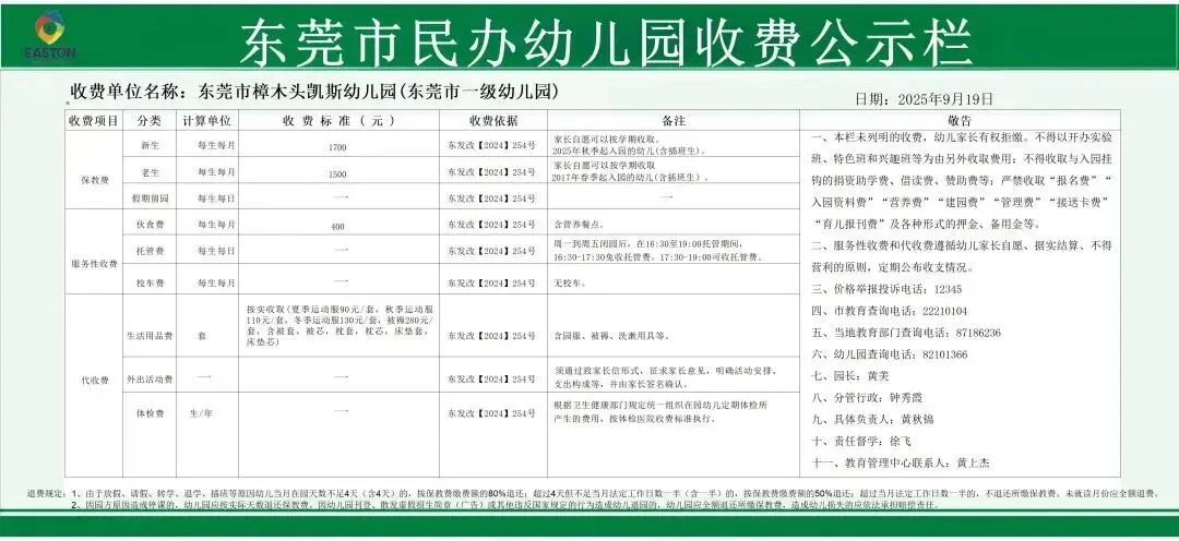 对比24年9月公布的收费公示,保教费、伙食费、代收费均有所调整: