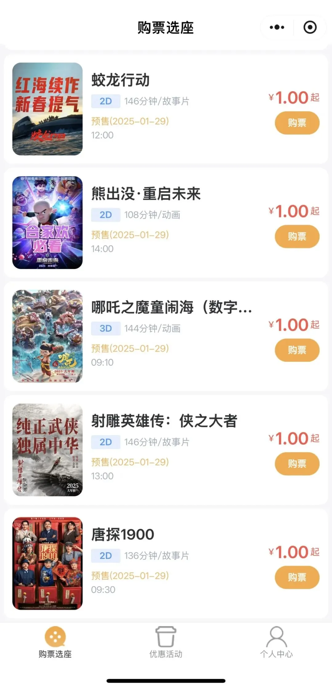 “春节1元观影”专属福利活动