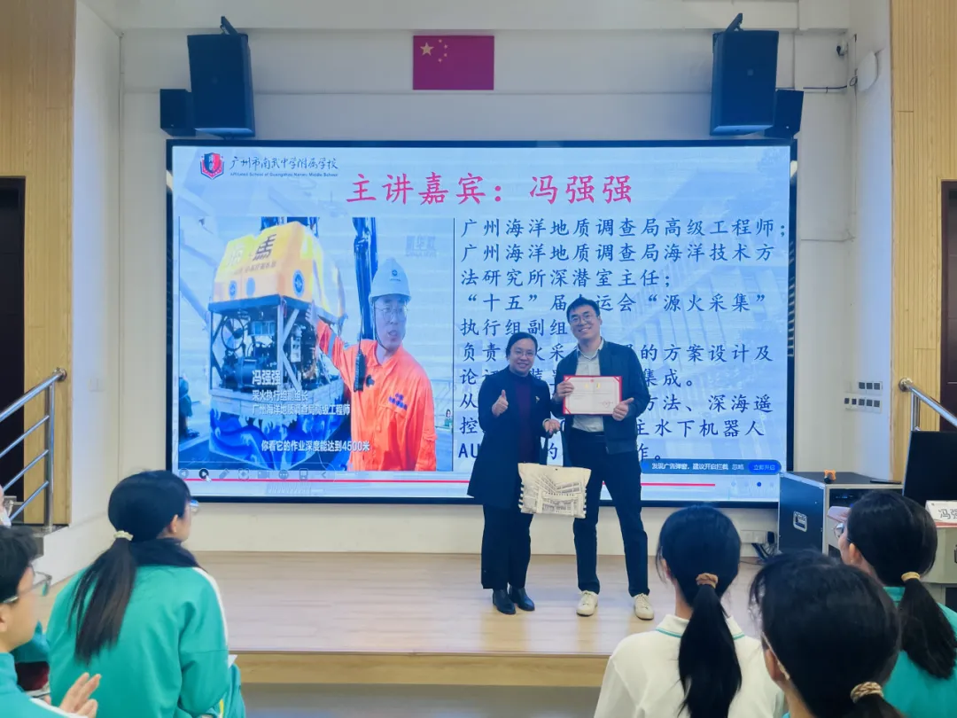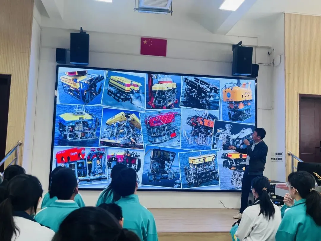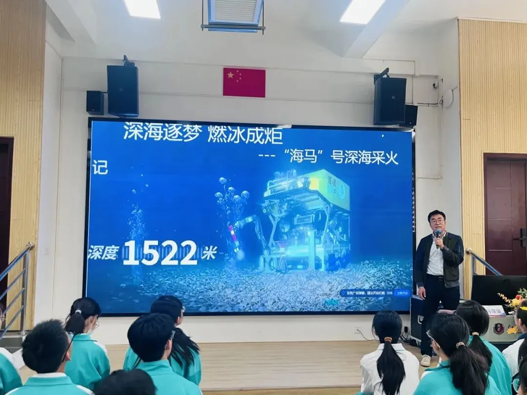 “海马号”深海采火科普讲座,让我对“冷泉”这一深海秘境有了全新的时候认识。原来在幽暗的海底,不仅有依靠地热和化学能形成的极端生态系统,更蕴藏着未来的清洁能源,可燃冰。“海马号”作为我国自主研制的深海利器,其精准作业的强大能力令人惊叹,它像一位信使,带回了地球深处的秘密。这次讲座不仅点燃了我对海洋深处的向往,更让我深刻感受到:每一次深海探索的突破,都是国家在背后坚实支撑。向深海进发,我们正探索着关于人类未来的无限可能。