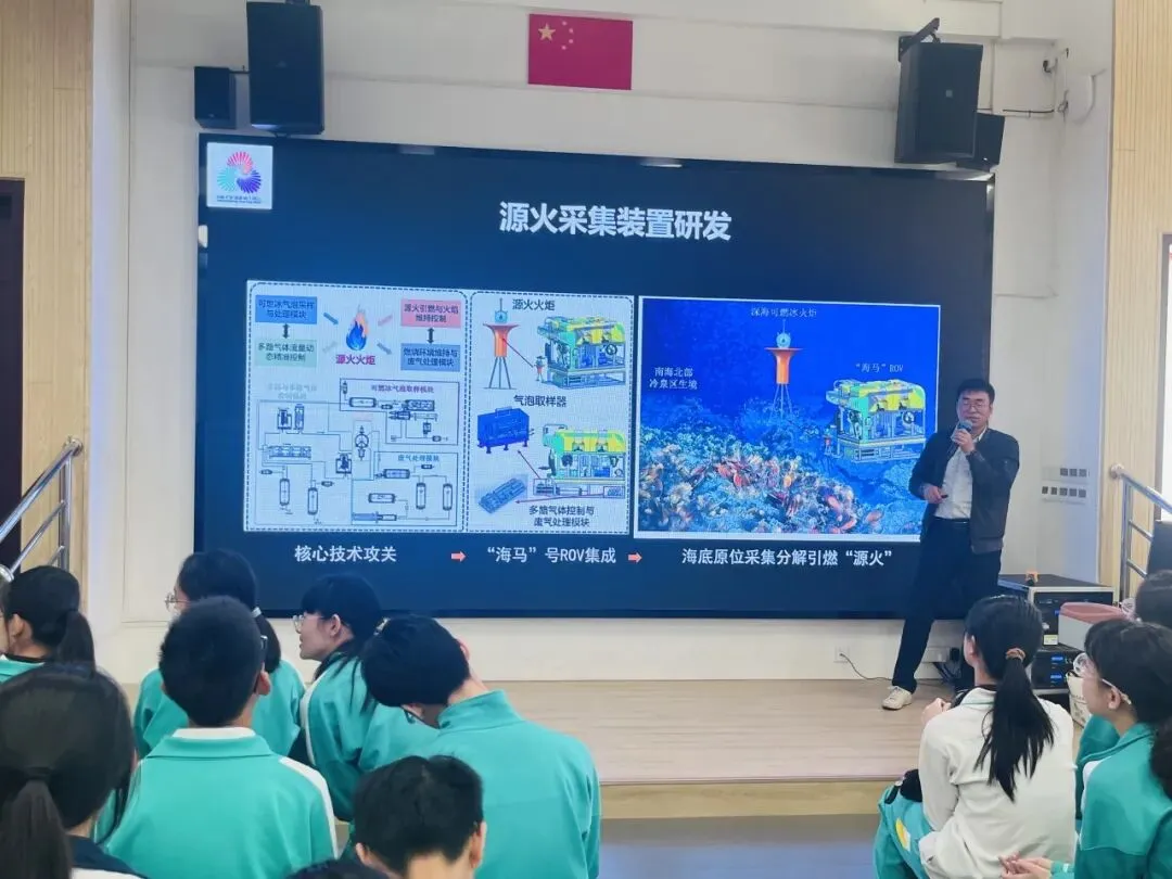 聆听冯教授关于十五运会可燃冰采集的讲座,我收获颇丰。冯教授细致讲解了南海1522米深海可燃冰火种的采集过程,从“海马”号下潜到降压分解、光伏引燃,每一步都彰显着我国深海科技的硬核实力,而可燃冰从试采到应用的发展历程,更让我看到科研工作者的坚守与突破。讲座中介绍的海域深层生物,它们在高压、黑暗的极端环境中演化出独特的生存本领,让我惊叹于海洋生态的神奇。这场讲座不仅让我认识了可燃冰这一清洁能源,更感受到我国海洋科技的进步与海洋探索的价值,也激发了我对海洋科学和科技创新的探索热情。