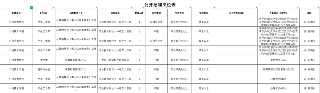 广州美术学院招聘高校毕业生公告(招聘13人,2月2日-6日报名)