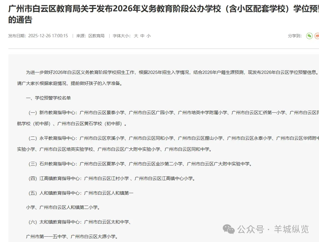 接下来,广州还有哪些区公布2026年学位预警,我们将保持密切关注~