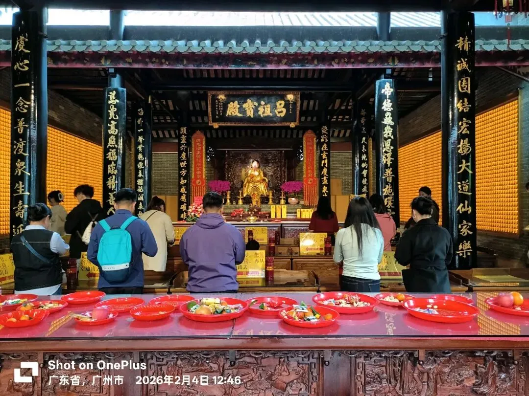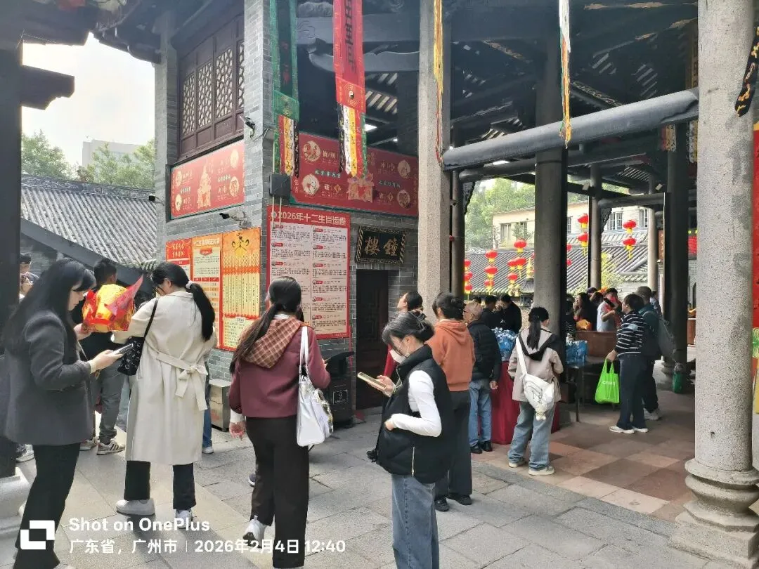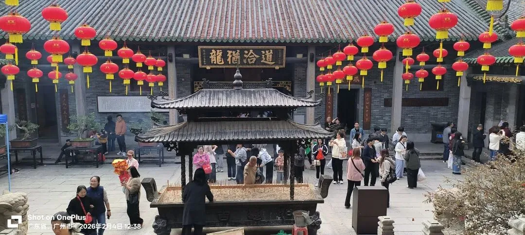 又是利用午休时间骑行广州老城,本想去越秀公园看花灯,经过三元宫,眼见人头攒动,察觉异常,工作日的大中午怎么会有这么多人?正当我纳闷时,身边恰好有外地游客经过,驻足观察,也生出了兴趣,但要赶着去看中山纪念堂,决定晚点再来。