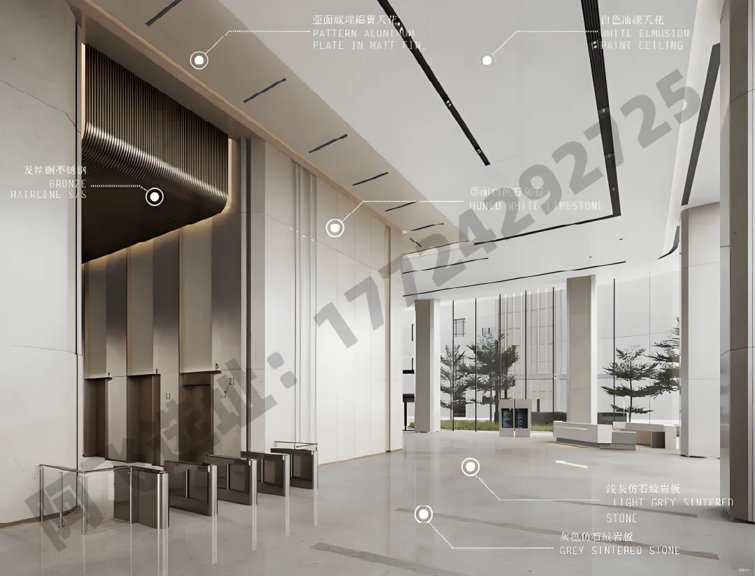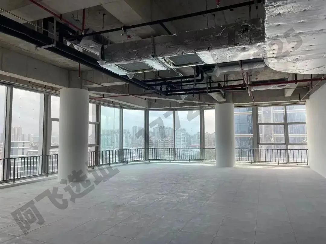【空调】写字楼风机盘管加独立新风系统;24小时数据机房冷却水系统,全楼宇新风量 30m³ /h.p;工作时间:周一至周五 08:30-18:00,周六08:30-12:00(大面积可提供24小时空调服务)【电梯】8部蒂升品牌电梯:写字楼客用电梯6台、VIP电梯1台、货梯1台【大堂】面积 580 ㎡;挑高约 10m【智能设施】5G 网络信号全覆盖+5A智能化系统管理【交楼标准】公区区域精装修,办公区域毛坯交付,风机盘管按设计完成吊装
