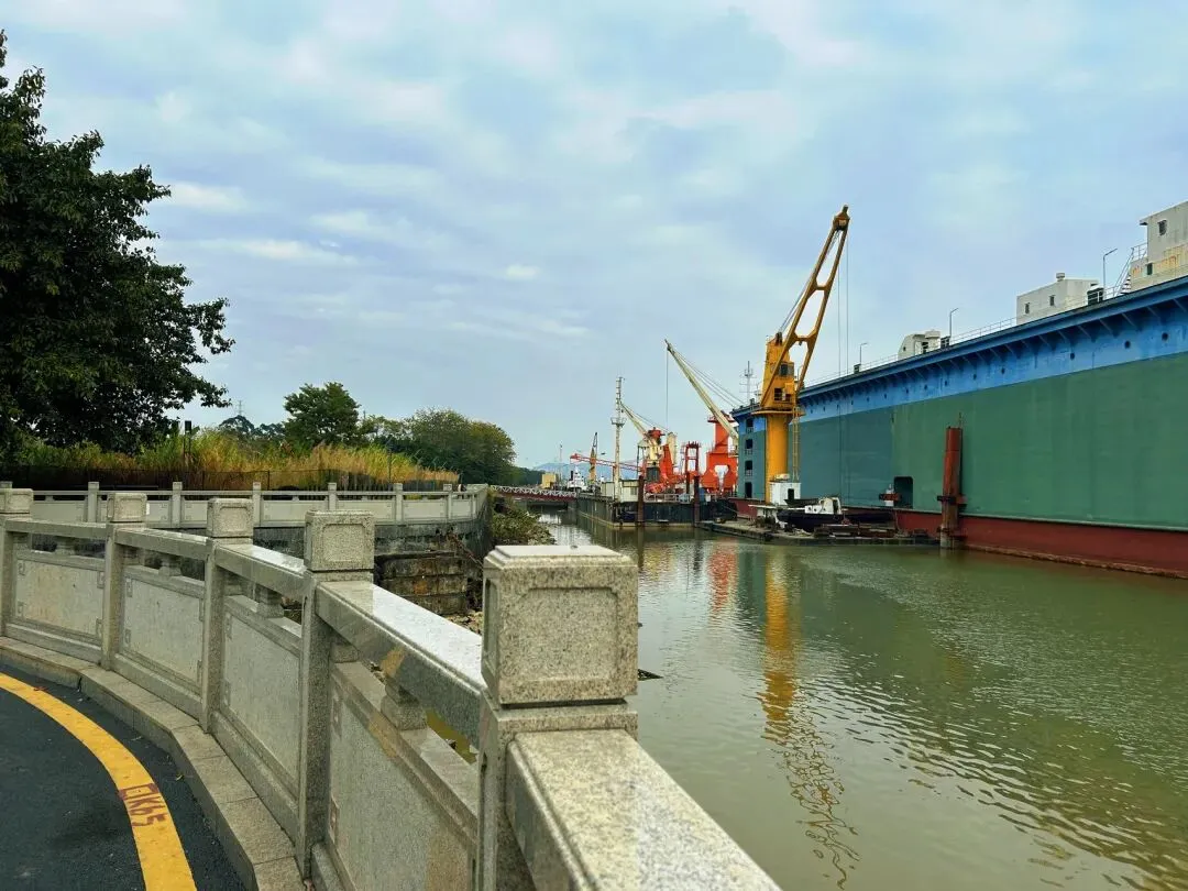 从院士港施工现场沿河道西行,几百米后就能遇见横亘于河面上的新担涌水闸廊桥。这里既是水利工程又是旅游观景台,这处科学技术与人文风景相结合的范例居然在国内是首创。