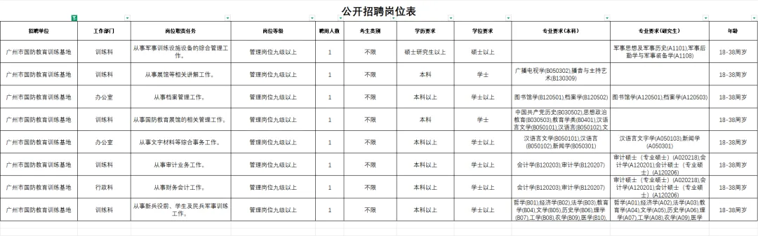 广州市国防教育训练基地招聘高校毕业生公告(招聘8人,2月2日-6日报名)