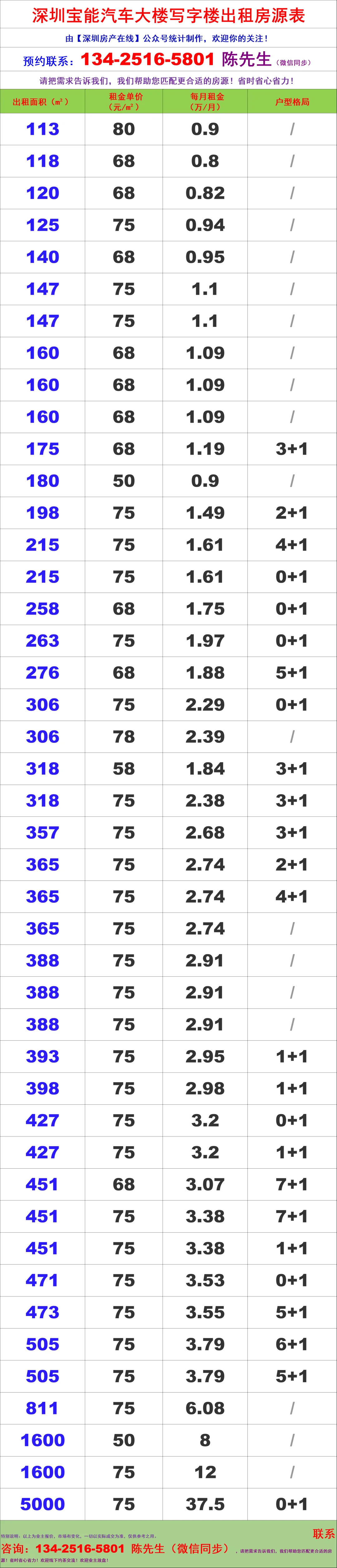 特别说明:市场有变化,以上房源数据仅供参考之用,一切以实际成交数据为准,预约看房敬请联系:【深圳房产在线】陈经理团队:134-2516-5801(微信同步)