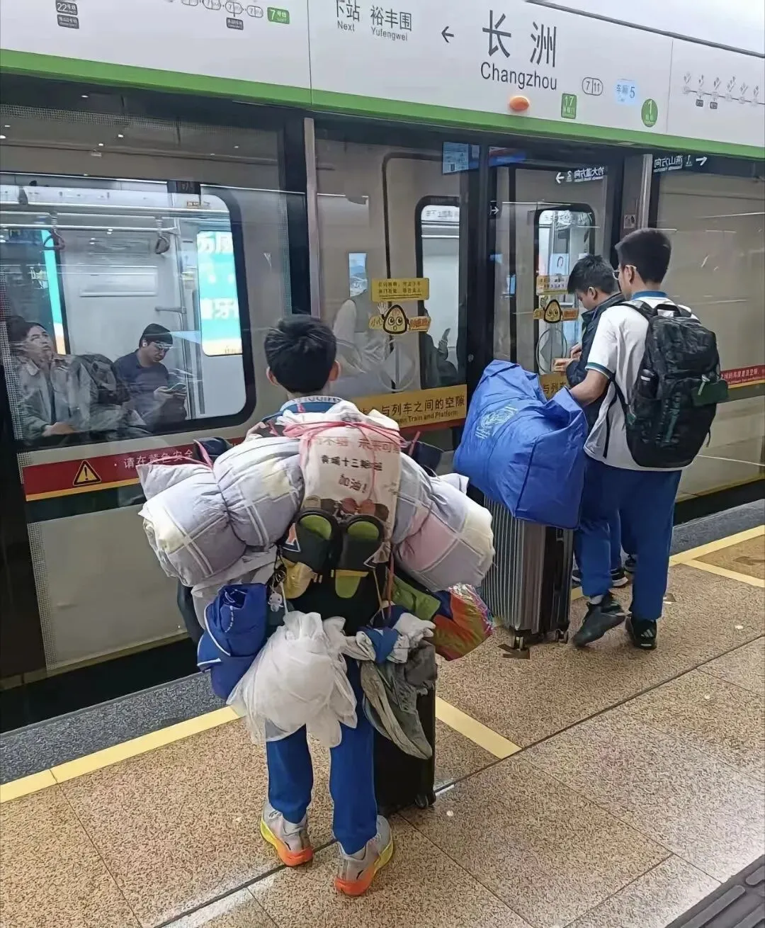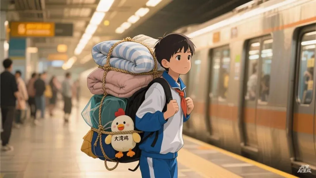 2026年1月30日,广州中小学寒假首日,地铁7号线长洲站的监控镜头捕捉到一幕让无数网友破防的画面:一名身着校服的初中生,瘦小的身躯上扛着堪比“小山堆”的行李,被褥、蚊帐卷成紧实的条状,运动鞋、拖鞋层层叠叠绑在背包外侧,甚至还藏着一只“大湾鸡”玩偶,十几斤的负重让背包带深深勒进肩膀,他却腰杆笔直,淡定等候地铁,全程未见家长陪同。这段视频迅速刷爆全网,相关话题霸占热搜,#广州初中生独自扛行李返乡# 阅读量超3亿,网友们的留言刷屏评论区,字里行间满是触动与反思。