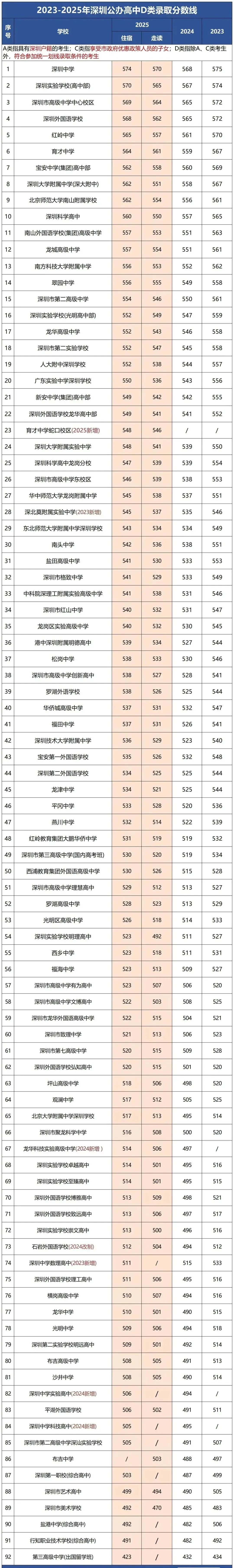 注意,2025年深圳中考新增了走读生,所以2025年多一个走读生分数线。