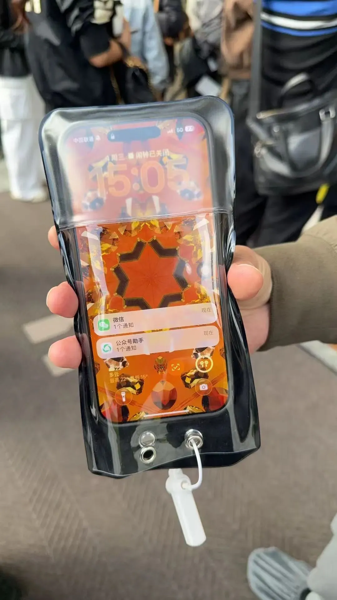 参观样板房之前,给手机带个套,防止拍照,也不影响继续使用手机。这点挺人性化,值得东莞开发商借鉴。看东莞顶豪板房,一般是收手机,暂时用不了。