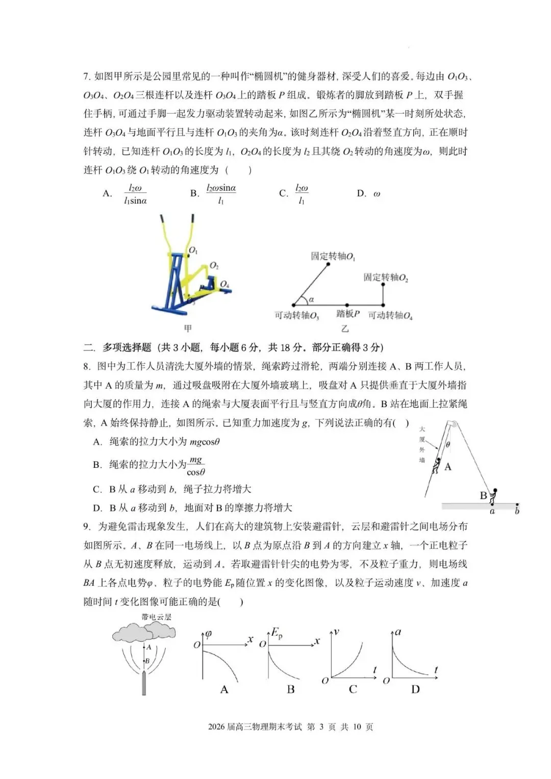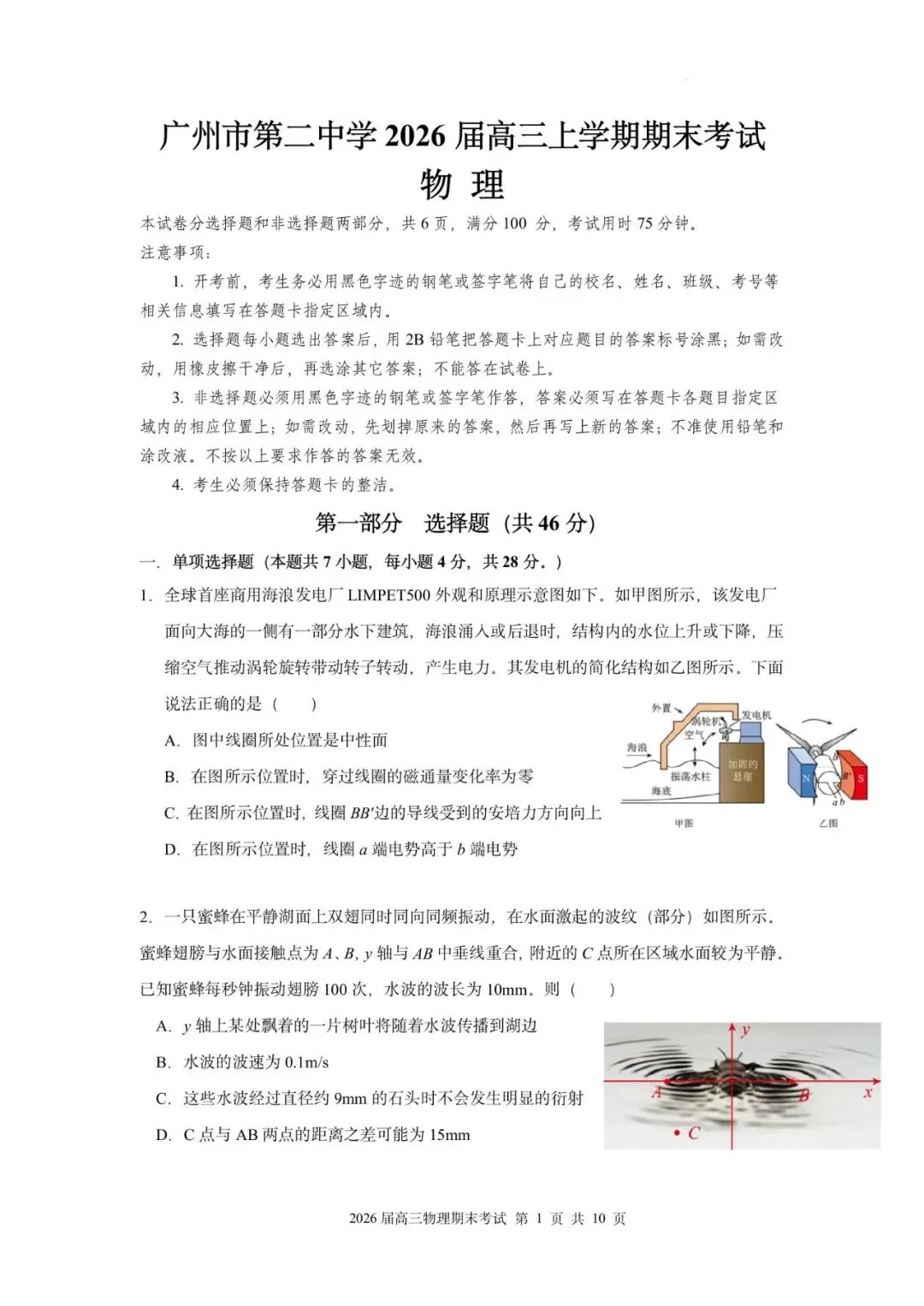 2026届广州市第二中学高三上学期期末考试物理试卷