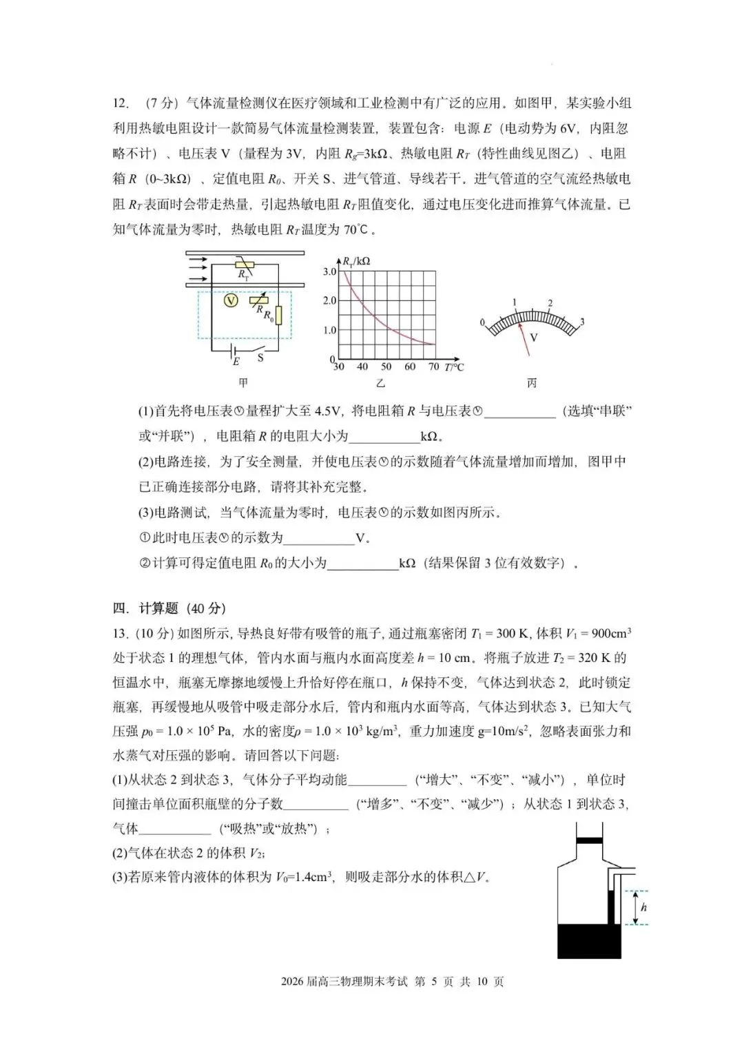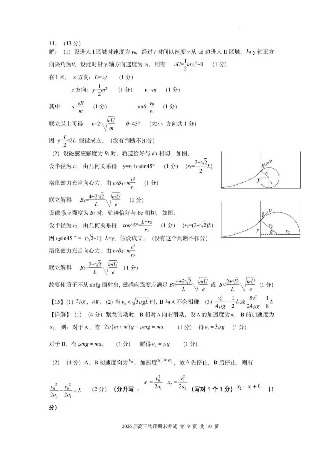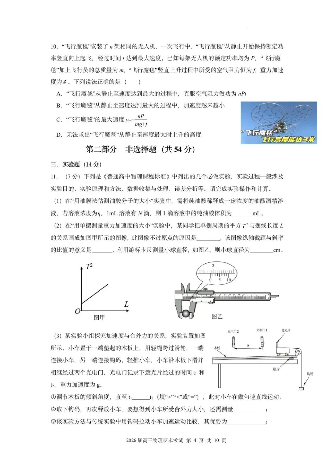 >2026届广州市第二中学高三上学期期末考试物理试卷
