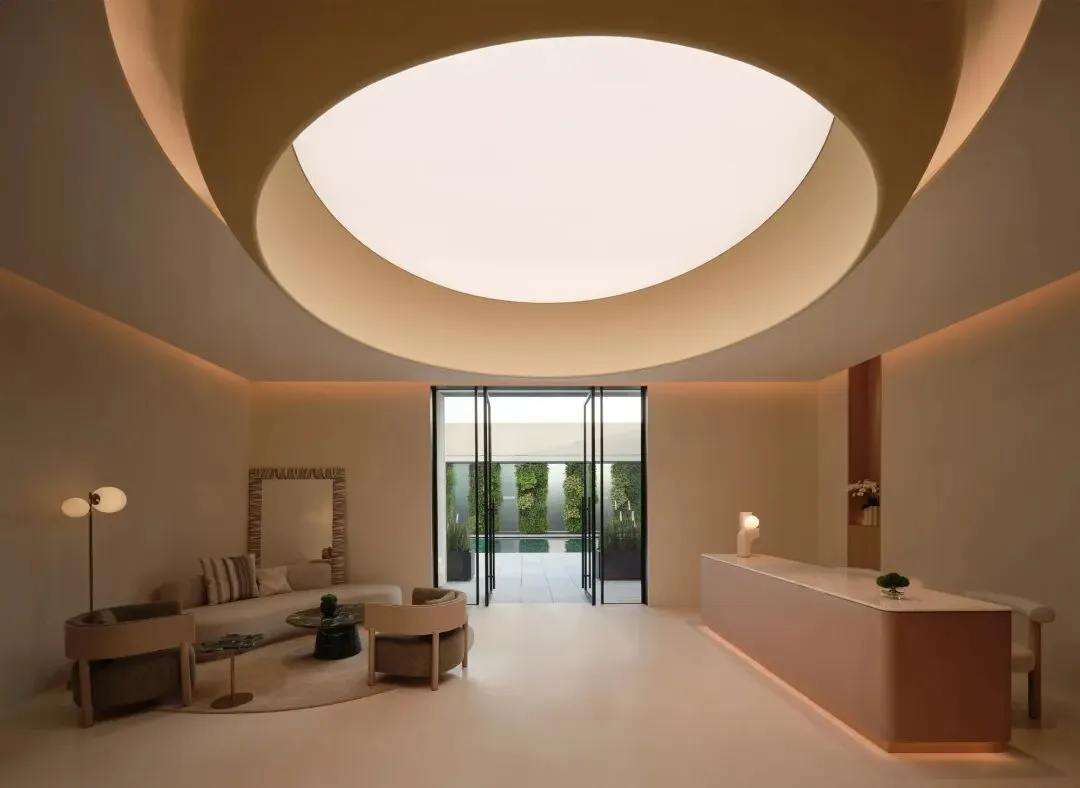 由Yabu Pushelberg操刀,将“高冷”与“生活感”融合。深红色的漆器屏风、精巧的艺术雕塑,像是一座云端艺术馆。
