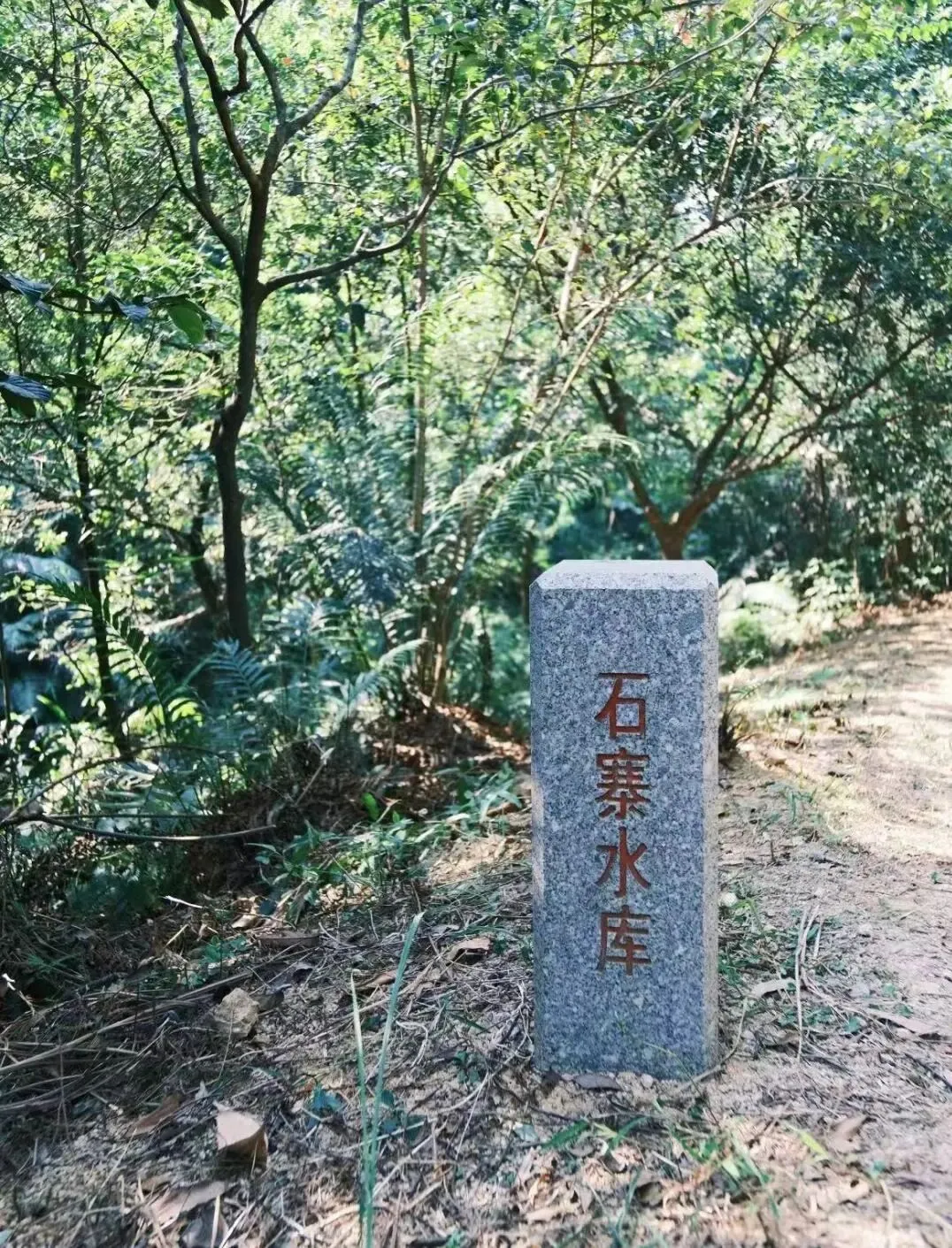 石寨水库关键岔口均有红蓝丝带标识,不容易迷路,大约徒步1小时便可抵达水库观景精华路段,全程没有补给和洗手间