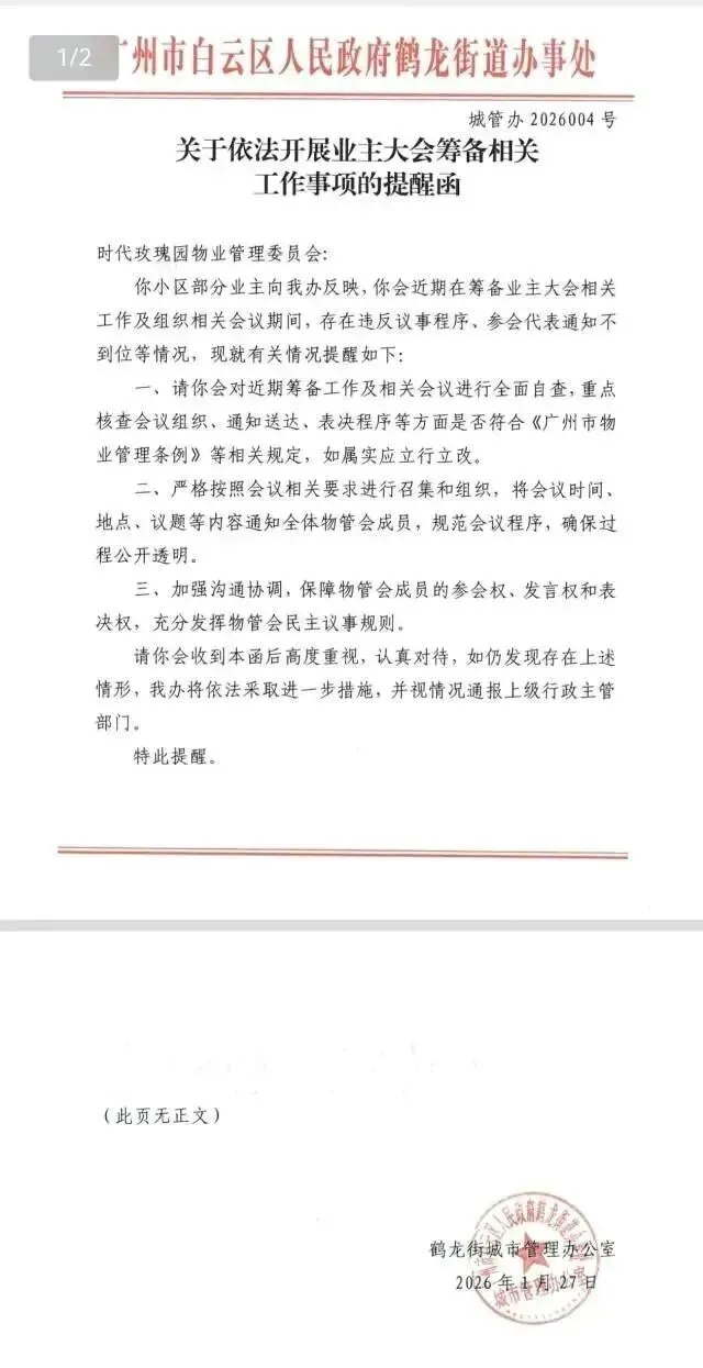 1月25日上午,时代玫瑰园小区三个公告栏突然出现两份文件,分别为2026年1月24日《