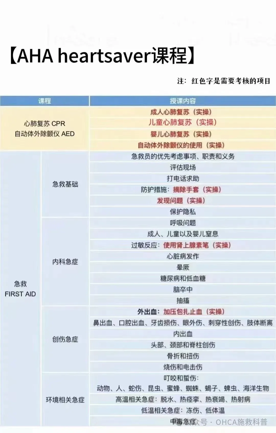 课程安排:原版AHA视频教学,演练,考核,笔试。