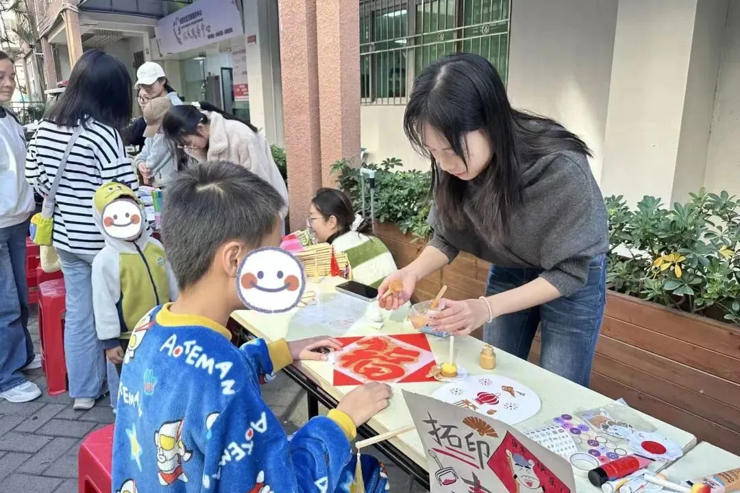 2026年1月10日,深职大爱在深圳突击队走进社区,开展了一场别开生面的“新年祝福传递”社会实践活动。通过设立创意摊位、带领居民体验手工、拓印与书写祝福,我们不仅将专业所学转化为温暖实践,也为社区增添了浓浓的节日温情与传统文化气息。