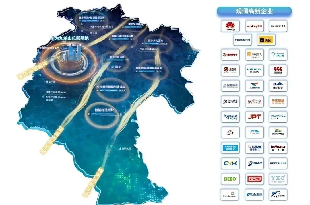 九龙山数字城:位于深圳市龙华区北部,规划总面积22.77平方公里,以打造世界级半导体科技城,对标新加坡裕廊创新区,华为、迈瑞医疗、富士康等行业巨头已入驻