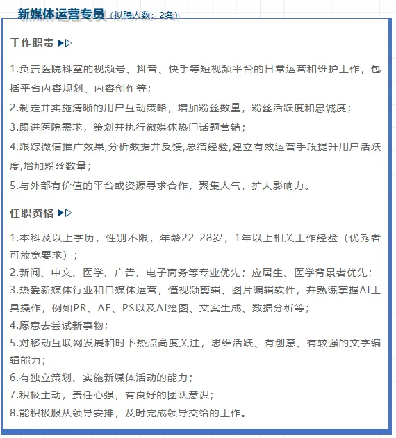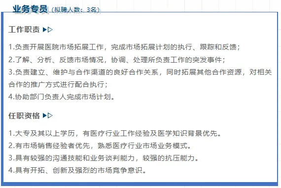 3.身体健康,热爱医学事业及医院工作,具有强烈的事业心和责任感。