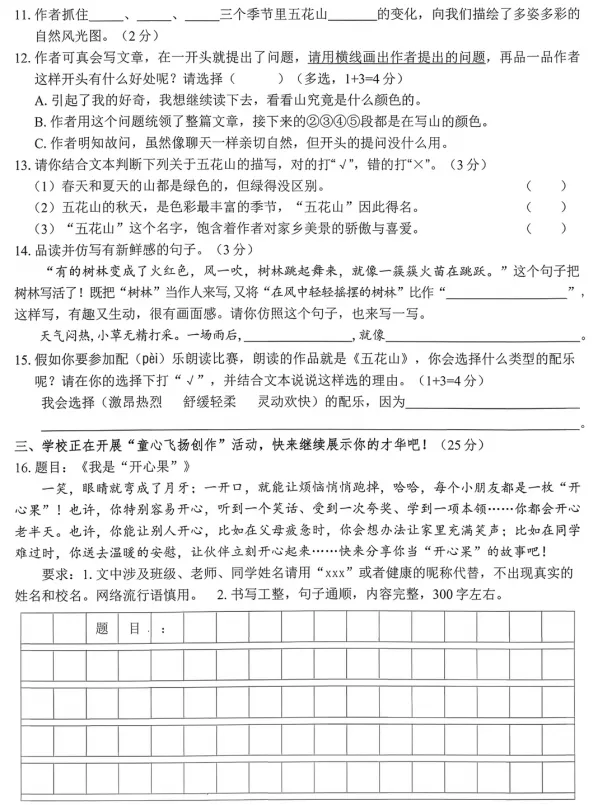 2026年深圳市罗湖区三年级上册语文期末试卷(第4页/共5页)