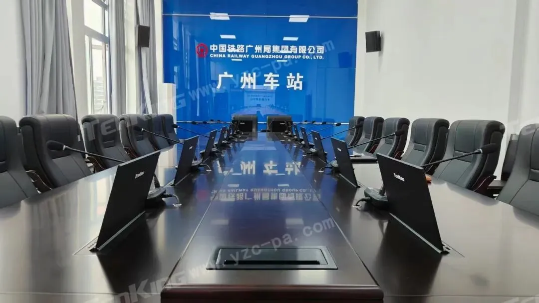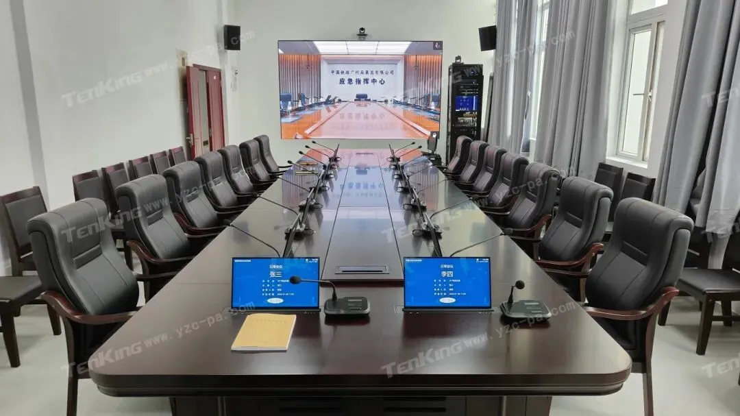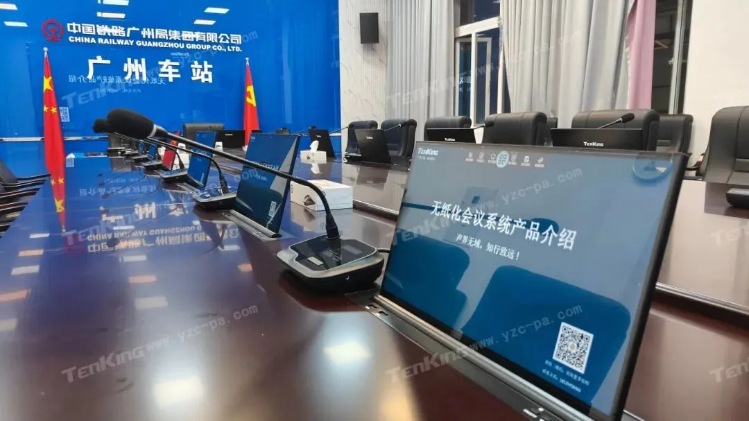 在此背景下,TenKing为广州站量身打造了一套集无纸化会议、分布式坐席管理、数字会议及专业扩声系统于一体的整体解决方案,全面赋能其会议室场景的智能化升级。