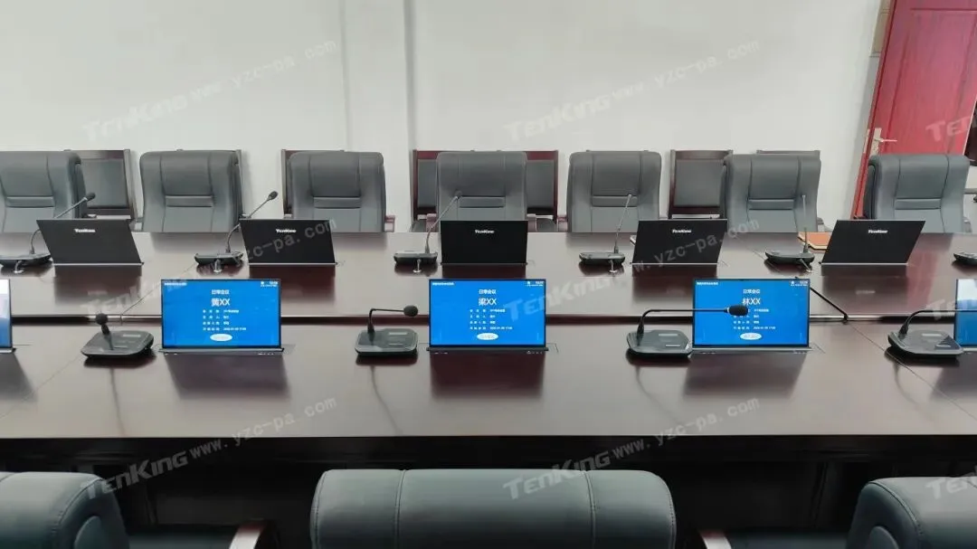 系统采用智能超薄全高清升降式交互终端,支持会议信息上传、文件分发、手写批注、投票表决及电子白板等核心功能,覆盖了从会前准备到会后归档的全流程管理需求。
