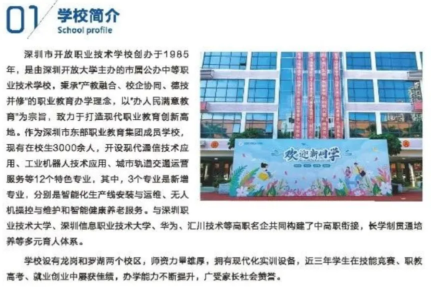 深圳市开放职业技术学校创办于1985年,是由深圳开放大学主办的市属公办中等职业技术学校,秉承”产教融合、校企协同、德技并修"的职业教育办学理念,以"办人民满意教育"为宗旨,致力于打造现代职业教育创新高地。作为深圳市东部职业教育集团成员学校,
