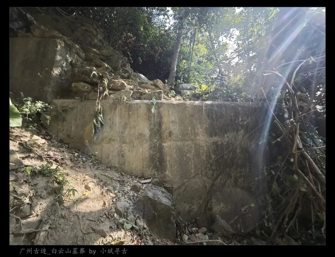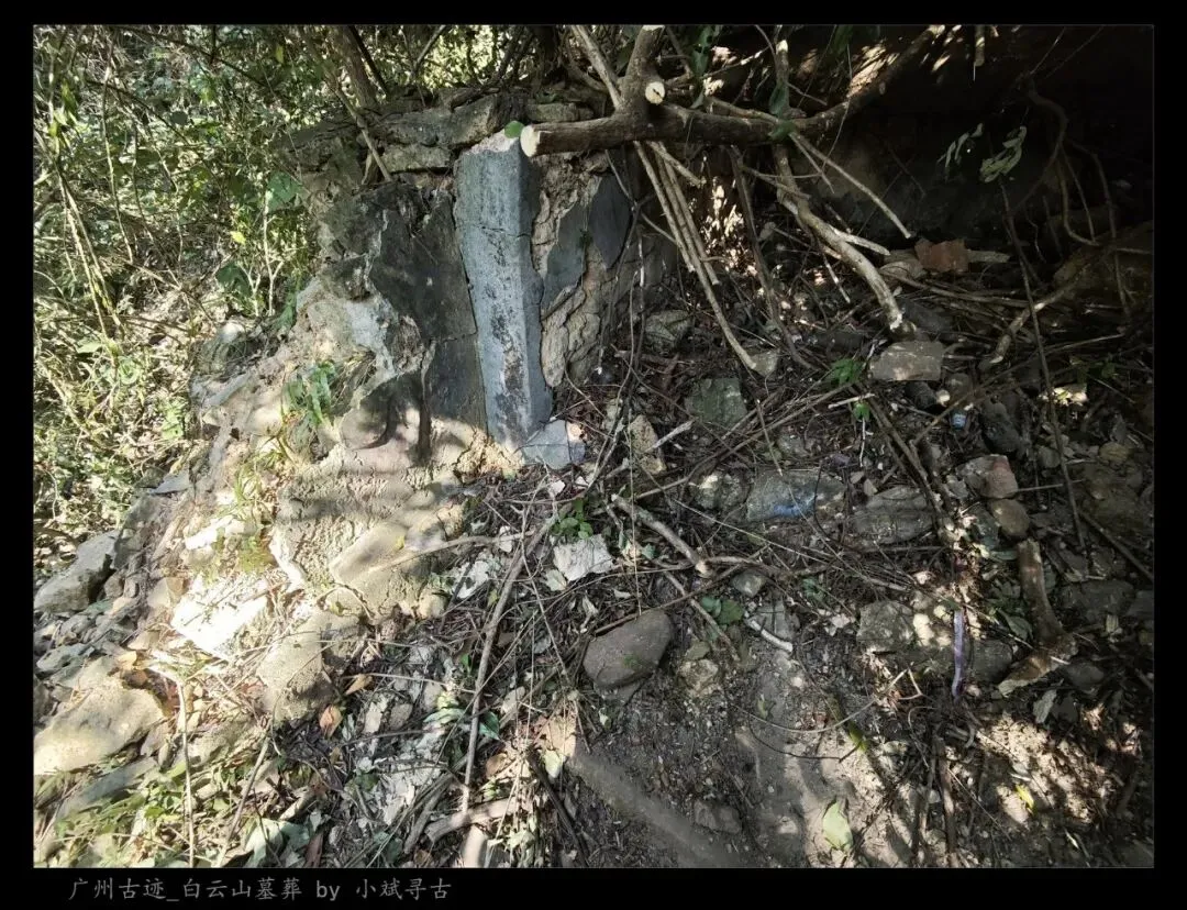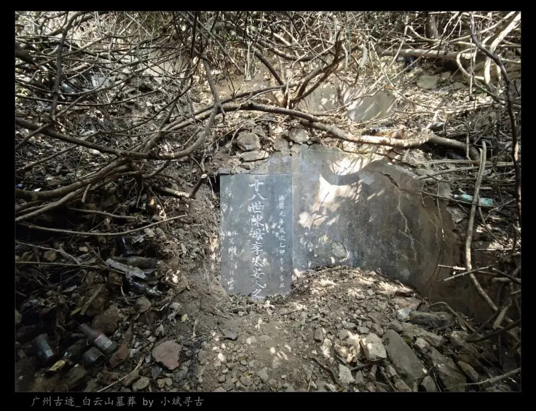 探访侧记:陈母李太安人墓位于白云山罗伞顶,坐西北朝东南,是一座小型灰砂交椅墓,由月池、山手、环垄、护岭组成。