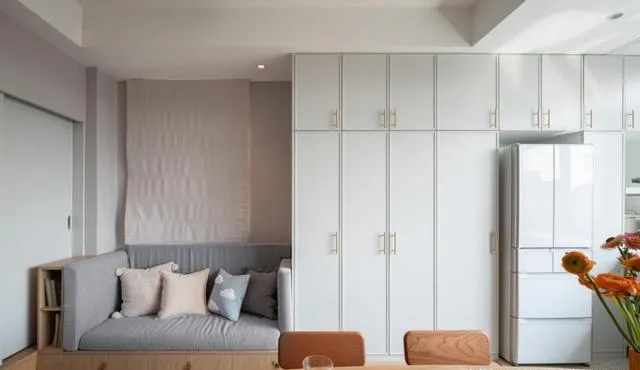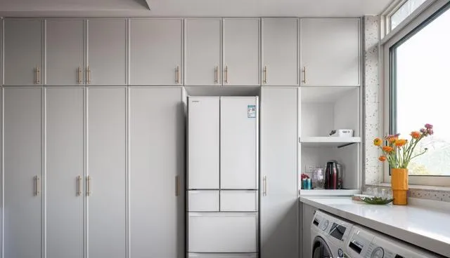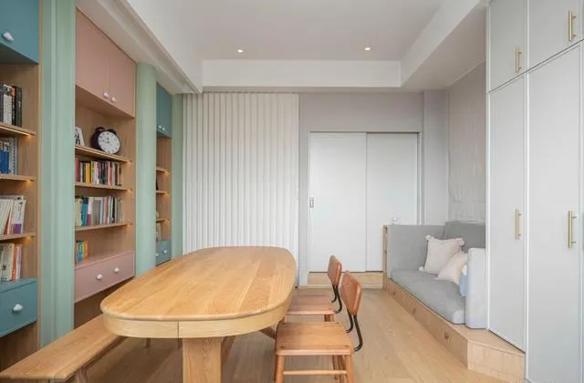 厨房阳台打通,6米操作台+连续收纳柜,洗衣做饭都牢牢收纳起来。大桌子配上几把小凳,吃饭、写作业、聊天、招待亲友全搞定!对,咱们普通家庭要的就是——温馨实用不炫富,谁家没点杂物?该藏就藏、能露就露。