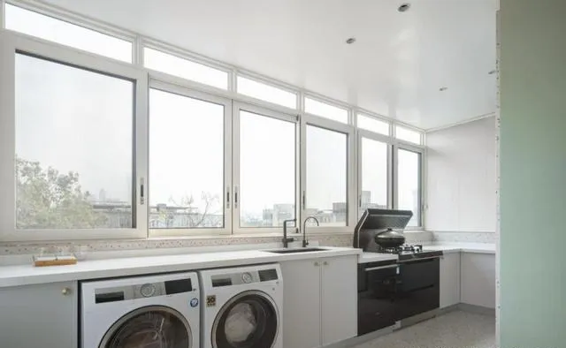 墙面定制书柜撞色,角落定制卡座沙发,洗衣机烘干机一体嵌入……每一个细节都在悄悄告诉我们,“温度,是靠用心生活来的”。很多网友留言,说这样的家让人有“回到小时候”的踏实感,这也是我最欣赏的地方——家不是比谁大,而是谁最懂家人的需求!